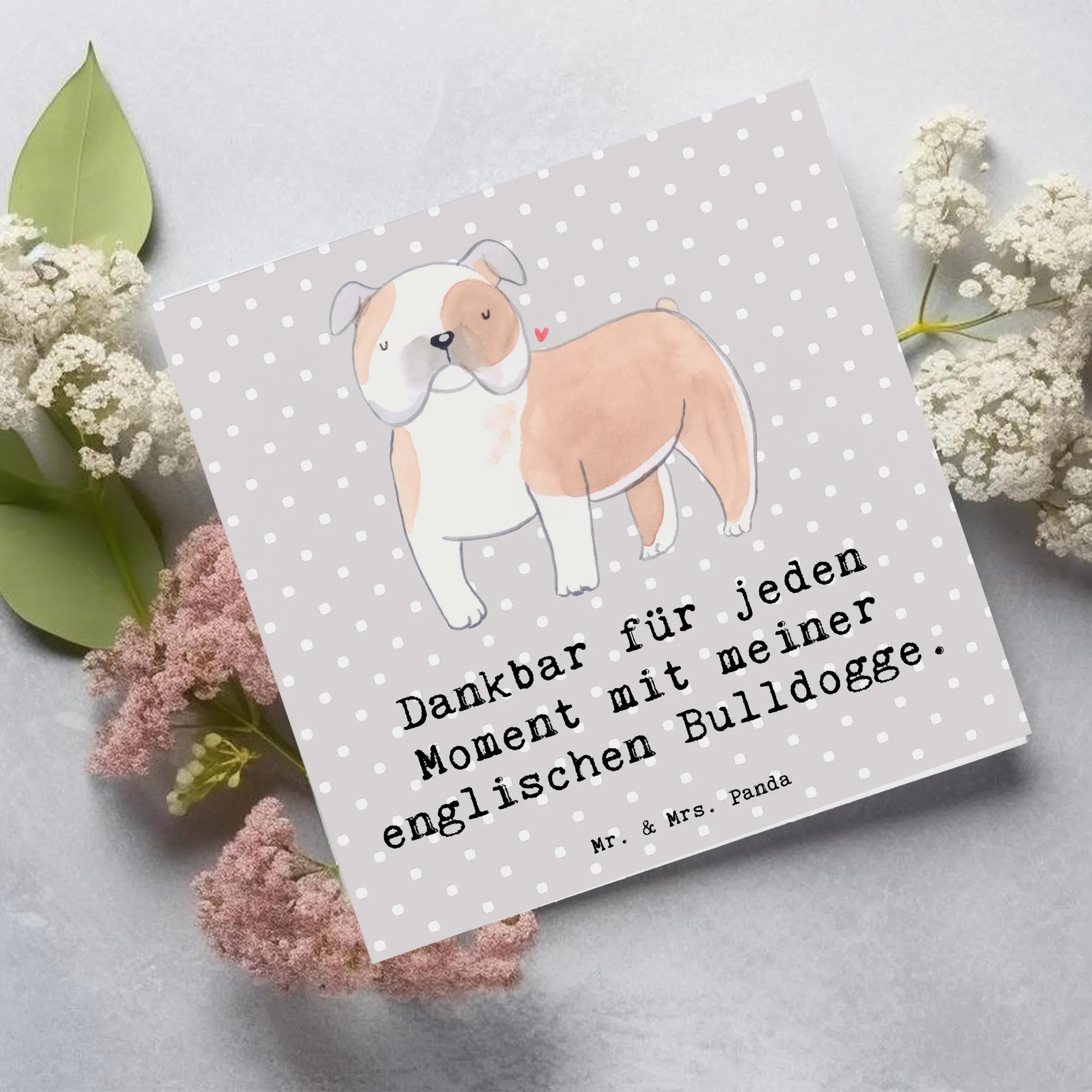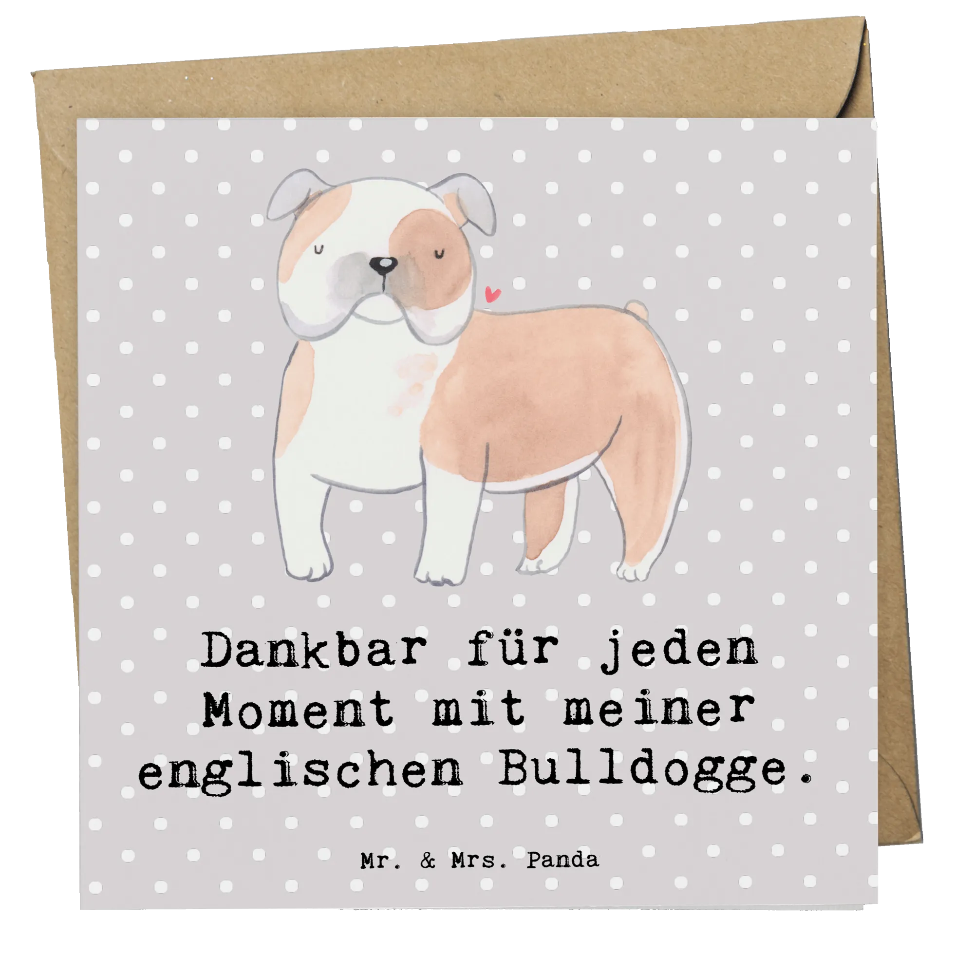 Mit dem Slogan "Dankbar für jeden Moment mit meiner englischen Bulldogge" wird ein liebevoller und emotionaler Ton gesetzt, der jeden Hundebesitzer ansprechen wird. Ob als Einladung, Glückwunschkarte oder einfach als kleine Aufmerksamkeit zwischendurch – diese Karte ist vielseitig einsetzbar und macht jeden Moment besonders.
