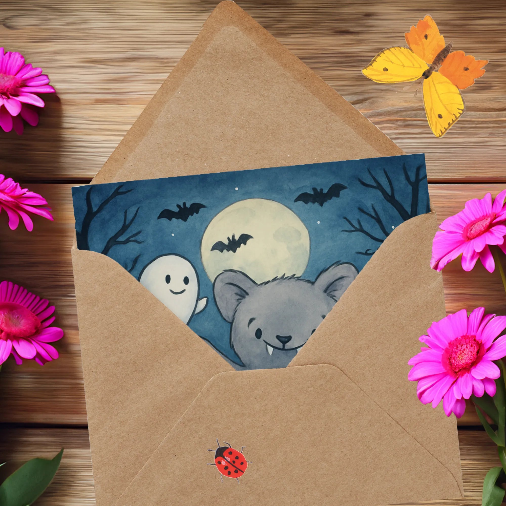Unsere kleine Fledermaus Dracula ist ein Herzstück voller Charme und Schalk. Stell dir vor: eine niedliche Fledermaus, die aussieht wie ein kleines Dracula, mit einem warmen, freundlichen Gesichtsausdruck und winzigen Fangzähnchen, die mehr zum Knuddeln als zum Gruseln einladen. Sie sitzt stolz da, umgeben von liebevoll gezeichneten Halloween-Elementen, die die Szene behutsam abrunden. Dieses Motiv bringt die perfekte Mischung aus Niedlichkeit und herbstlicher Stimmung in dein Zuhause – ideal für alle, die Halloween lieben, aber keinen allzu großen Grusel wollen. Mit sanften Farben und klaren Linien erzählt die Illustration eine kleine Geschichte: eine Fledermaus, die neugierig die Welt betrachtet und dabei so freundlich wirkt, dass man sie am liebsten in den Arm nehmen möchte. Ob auf einem Kissen, als Kunstdruck oder auf deinem Lieblingsshirt – dieses Motiv zaubert ein Lächeln auf die Gesichter deiner Freunde und Familie. Mr. & Mrs. Panda mögen besonders, wie die süßen Fangzähnchen dem Motiv Charakter verleihen, ohne zu übertreiben. Wenn du auf der Suche nach einem warmen, stimmungsvollen Halloween-Motiv bist, das sowohl Kinder als auch Erwachsene begeistert, dann ist unsere Fledermaus Dracula genau das Richtige. Sie erinnert uns daran, dass auch in der Nacht Freundlichkeit leuchten kann.