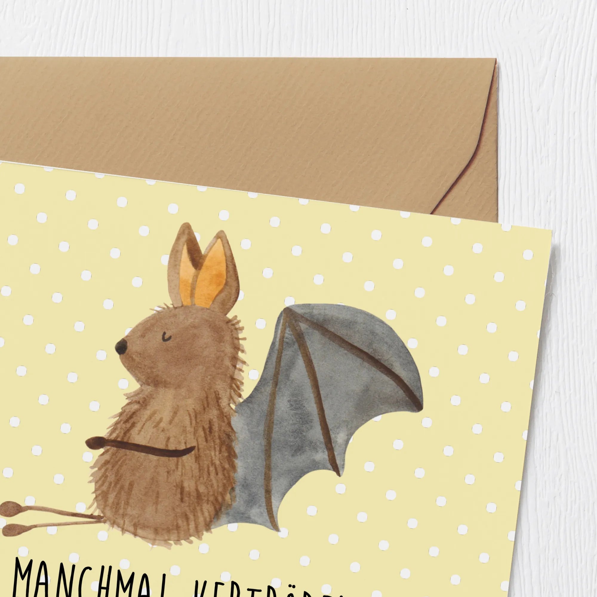 Die Deluxe Karte "Fledermaus sitzend" aus der beliebten Small World Kollektion von Mr. & Mrs. Panda ist nicht nur ein wunderschönes, sondern auch ein sehr hochwertiges Geschenk für jeden Anlass. Diese quadratische Karte, die großzügige Maße von 140 mm x 140 mm misst, besteht aus 300 g schwerem Karton, der mati-glänzend veredelt ist. Damit sprichst du Freunde, Familie oder Kollegen an, denn die liebevoll designte Fledermaus auf der Vorderseite zaubert jedem ein Lächeln ins Gesicht.
