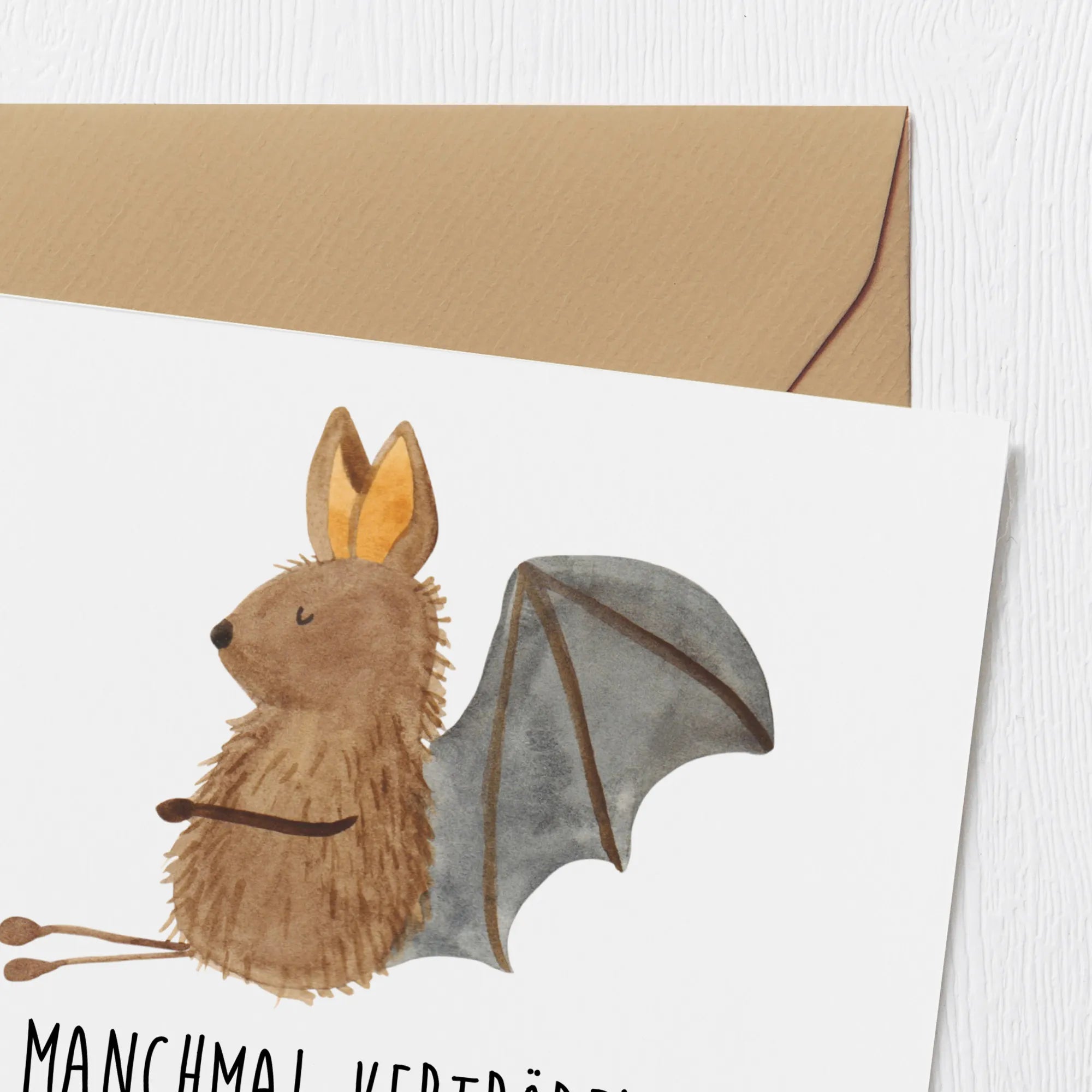 Deluxe Karte Fledermaus Sitzen - mit Spruch - Weiß