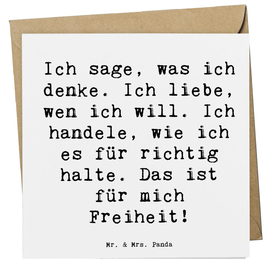 Hergestellt aus hochwertigem 300 Gramm Karton, besticht diese Karte durch ihre edle Optik und fühlbare Qualität. Die hochglänzend veredelte Vorderseite ziert einen inspirierenden Spruch: 'Ich sage, was ich denke. Ich liebe, wen ich will. Ich handele, wie ich es für richtig halte. Das ist für mich Freiheit!'. Dies macht die Karte perfekt für zahlreiche Anlässe – sei es ein Geburtstag, eine Hochzeit, eine Verabschiedung oder einfach nur, um jemandem ein Lächeln ins Gesicht zu zaubern.
