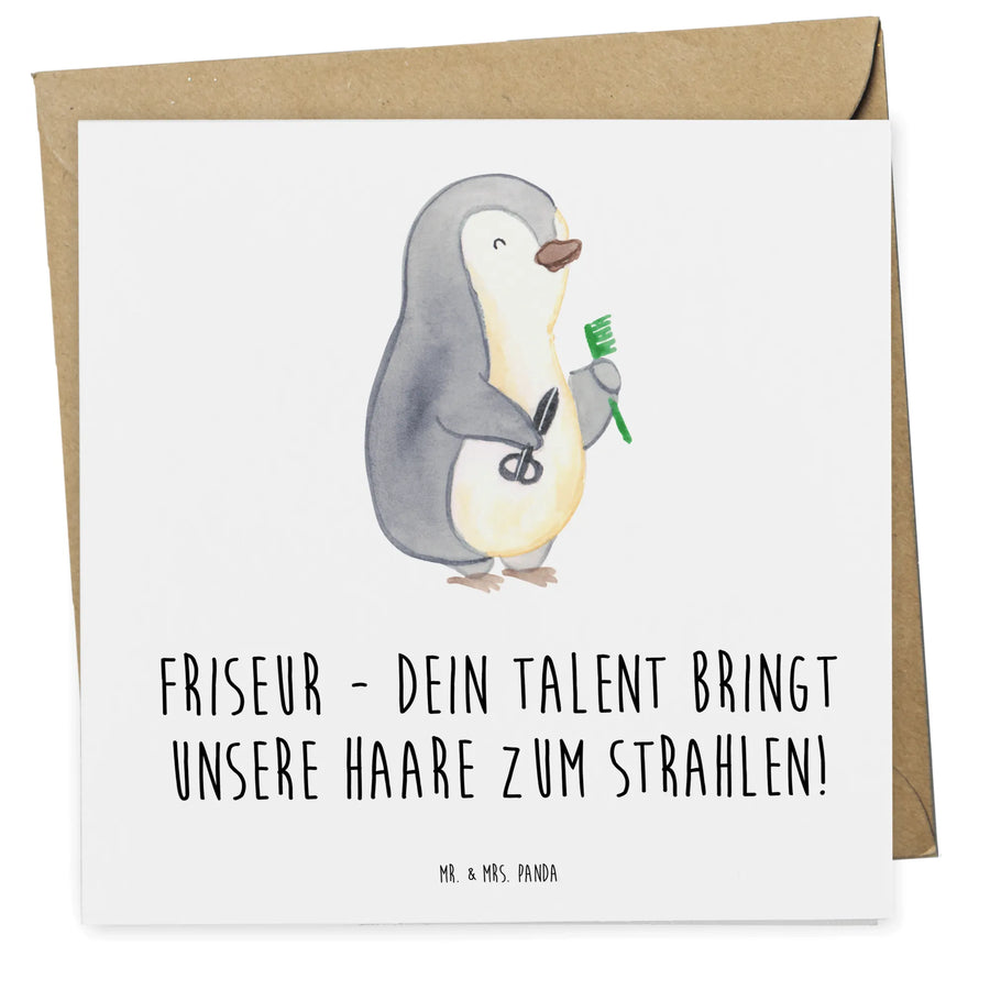 Die Deluxe Karte "Friseur" aus der Sammlung Danke von Mr. & Mrs. Panda ist das perfekte Geschenk, um deine Dankbarkeit auf eine ganz besondere Art und Weise zu zeigen. Ob du dich bei deinem Friseur für die tolle Haarverwandlung bedanken möchtest oder einfach nur eine nette Geste für eine Freundin planst, diese Karte wird begeistern. Mit dem Slogan "Friseur - Dein Talent bringt unsere Haare zum Strahlen!" trifft die Karte genau den richtigen Ton und verleiht deinem Dankeschön eine persönliche Note.