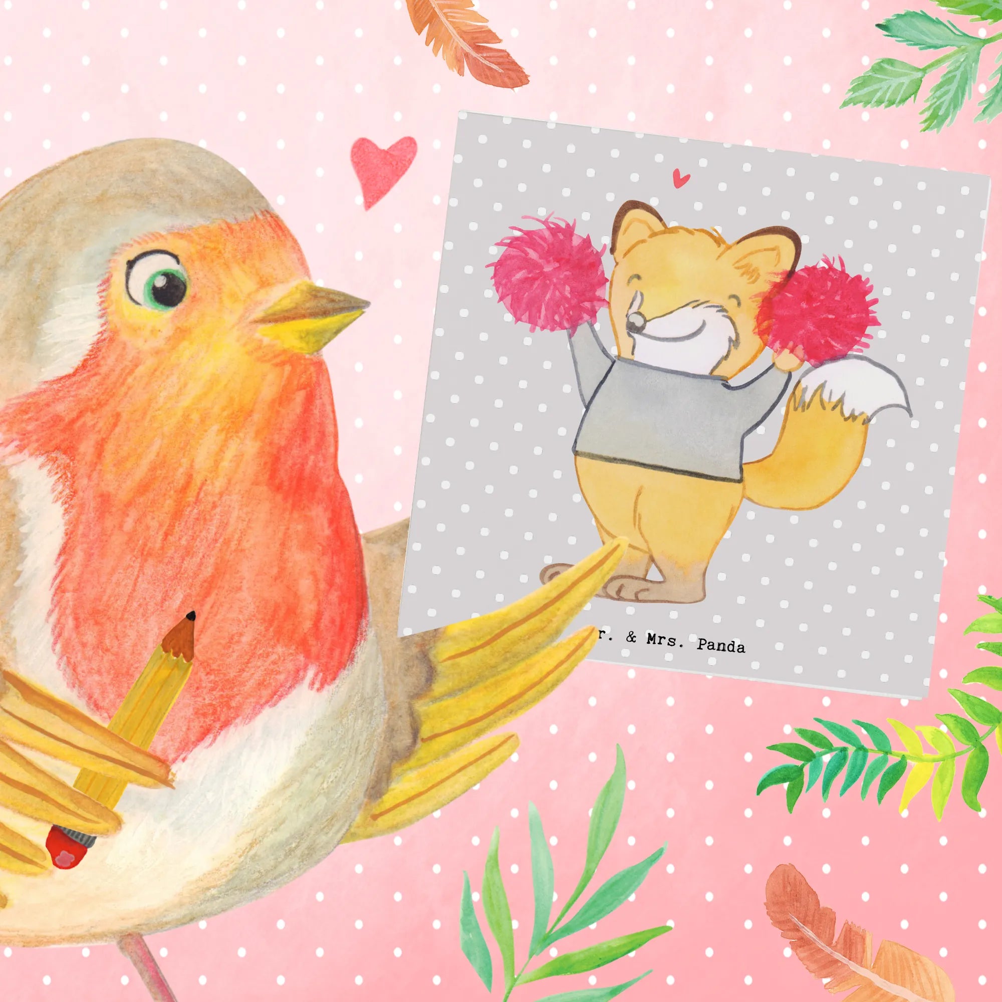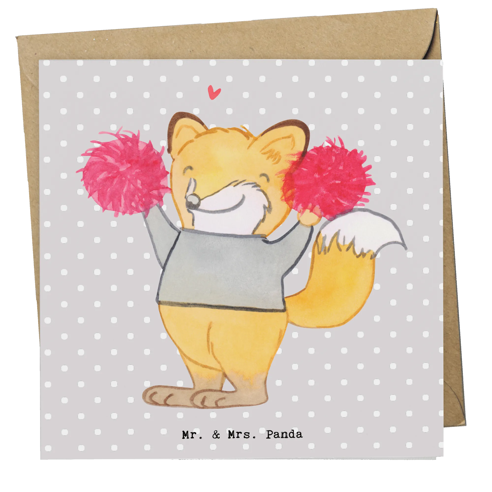 Die Deluxe Karte "Fuchs Cheerleader Medizin" von Mr. & Mrs. Panda ist das perfekte Geschenk für alle Cheerleading-Begeisterten und Sportliebhaber! Egal ob zum Geburtstag, zur Hochzeit oder einfach nur, um 'Danke' zu sagen – diese wunderschöne Karte passt perfekt zu jeder Gelegenheit. Mit einer Größe von 140 mm x 140 mm ist sie nicht nur handlich, sondern besticht auch durch ihre hochwertige Verarbeitung aus 300 Gramm Karton.