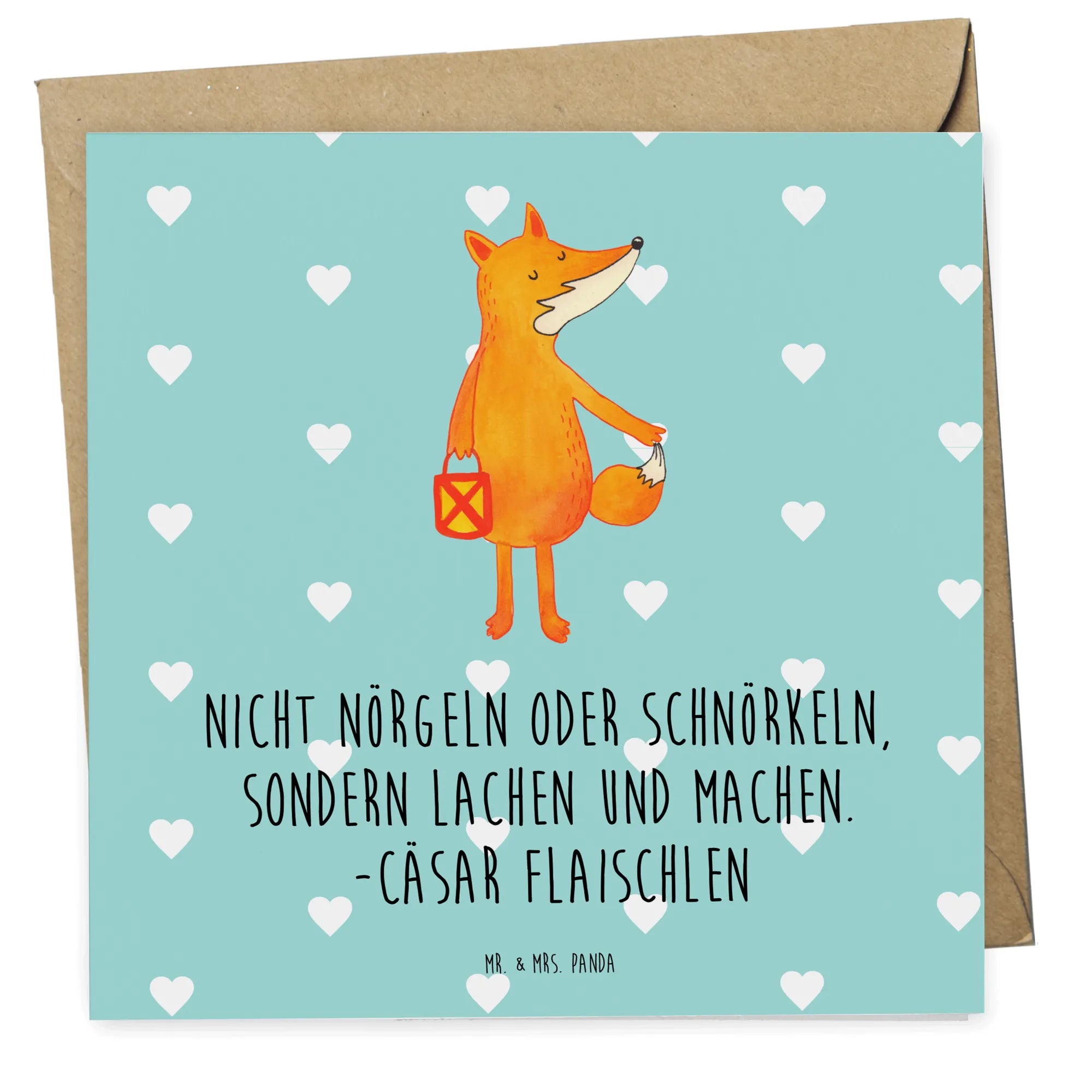 Mit dem Spruch „Nicht nörgeln oder schnörkeln, sondern lachen und machen. -Cäsar Flaischlen“ versprüht diese Karte zusätzlich Lebensfreude und Positivität. Die Fuchs Kollektion von Mr. & Mrs. Panda zeichnet sich durch ihre liebevollen, handgezeichneten Motive aus, die Erinnerungen schaffen und mit einem Hauch von Nostalgie verbinden.