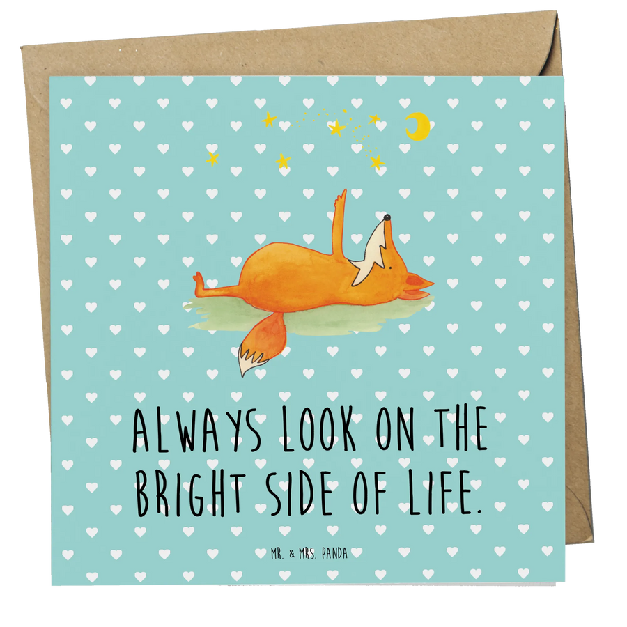 Der Fuchs ist ein sehr geselliges und familiäres Tier und genau das spiegelt die Fuchs Kollektion wider. Mit dieser Karte schenkst du nicht nur ein Stück Papier, sondern auch Freude und Liebe. Die Kombination aus dem süßen Fuchs-Motiv und dem positiven Spruch "Always look on the bright side of life" macht die Deluxe Karte zu einem unvergesslichen Geschenk, das in Erinnerung bleibt. Mach deinen Liebsten eine Freude, indem du ihnen diese niedliche Karte schickst und zeige ihnen, dass du immer auf die positive Seite des Lebens schauen möchtest! Mit der Deluxe Karte Fuchs Sterne von Mr. & Mrs. Panda triffst du sicher die richtige Wahl – voller Liebe und Freude, ganz im Zeichen der Füchse!