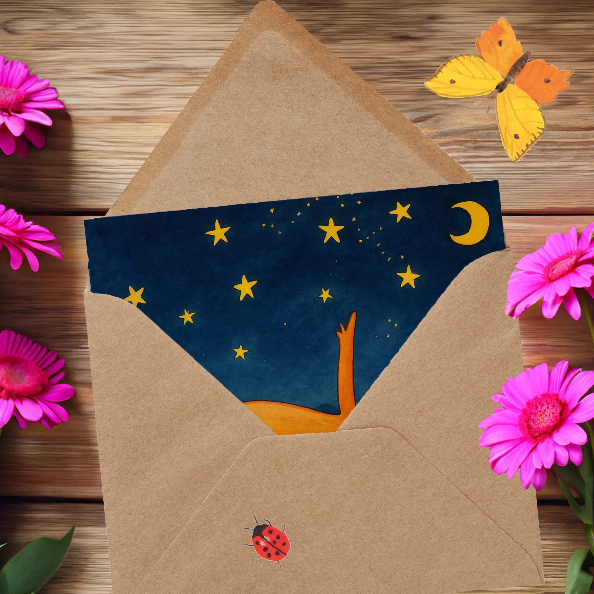 In einer klaren, sternenklaren Nacht liegt unser fröhlicher Fuchs entspannt auf dem Rücken und lässt die Gedanken durch die funkelnden Sterne schweifen. Mit einem breiten Grinsen genießt er den Moment und fordert uns auf, das Schöne im Leben zu entdecken. Es ist eine Einladung, die Welt durch die Augen eines Füchses zu sehen und immer das Positive zu wählen. Die Botschaft hier ist klar: Auch wenn die Zeiten turbulent sind, gibt es immer einen Lichtstrahl, den wir ansteuern können. Romantik, tröstende Worte und ein schöner Spruch können das Herz erwärmen und neue Hoffnung bringen. Lass dich von ihm inspirieren und entdecke die Magie des Lebens in den kleinsten Momenten.