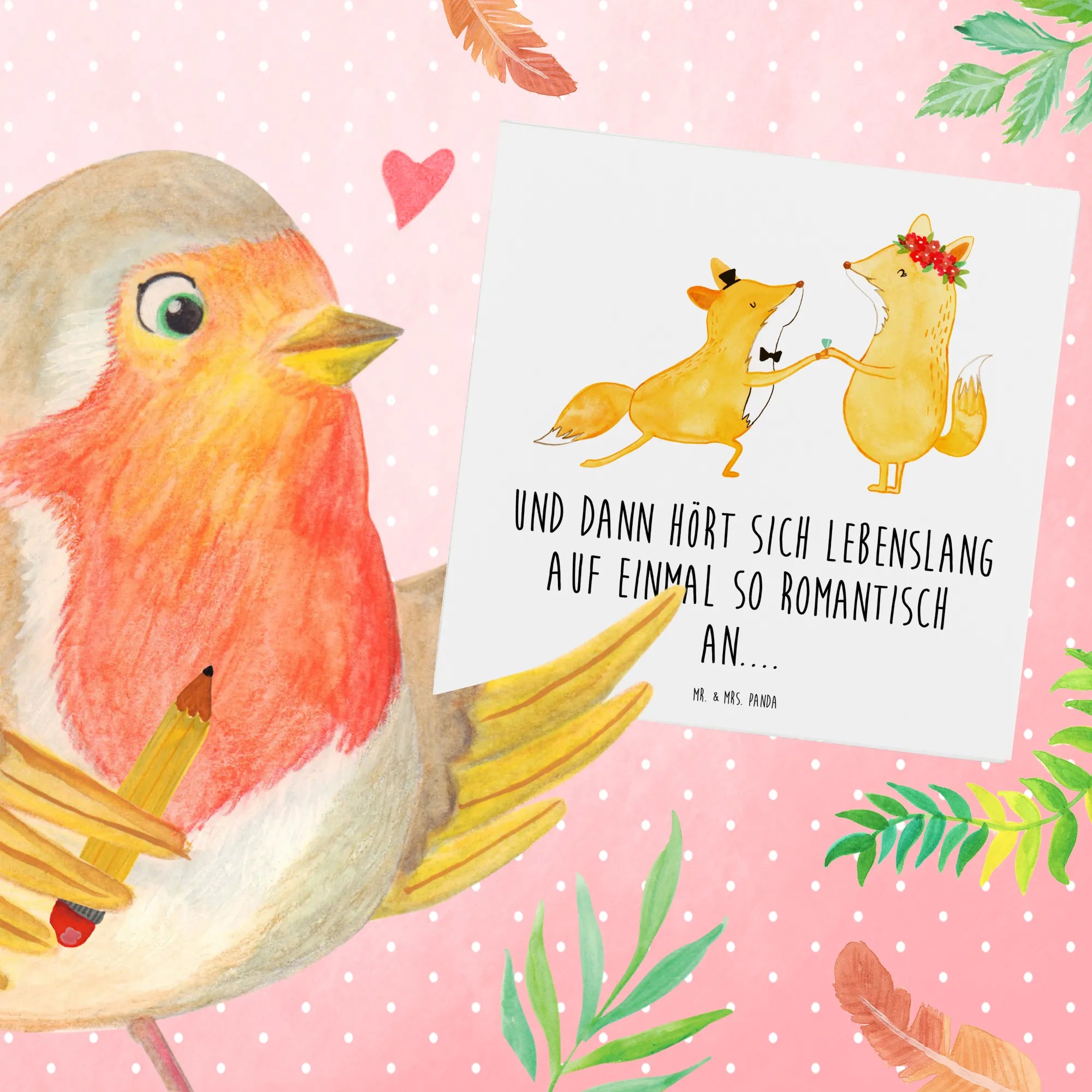 Die Hochzeitskollektion von Mr. & Mrs. Panda ist voll von süßen und romantischen Motiven, die von der Liebe inspirierte Geschichten erzählen, und die Füchse sind da keine Ausnahme. Du kannst die Karte zu vielen Anlässen verschenken: zur Hochzeit, zum Verlobungsfest oder als besonderes Trauungsgeschenk. Sie eignet sich für persönliche Nachrichten oder als schöner Glückwunsch zu einem Jubiläum.