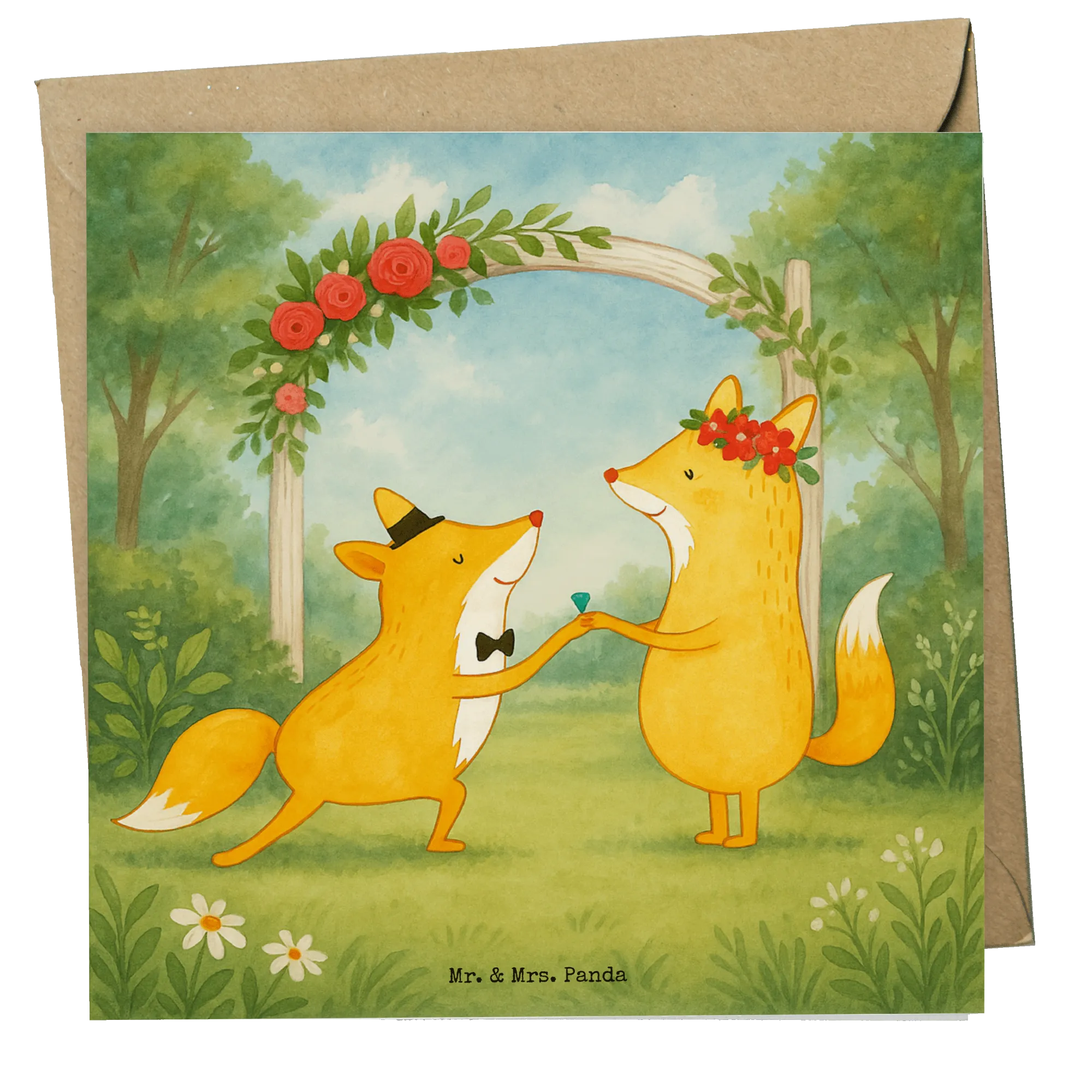 Lebenslange Liebe - Füchse Hochzeit Aquarell von Mr. & Mrs. Panda, mit tiefgründigem Spruch