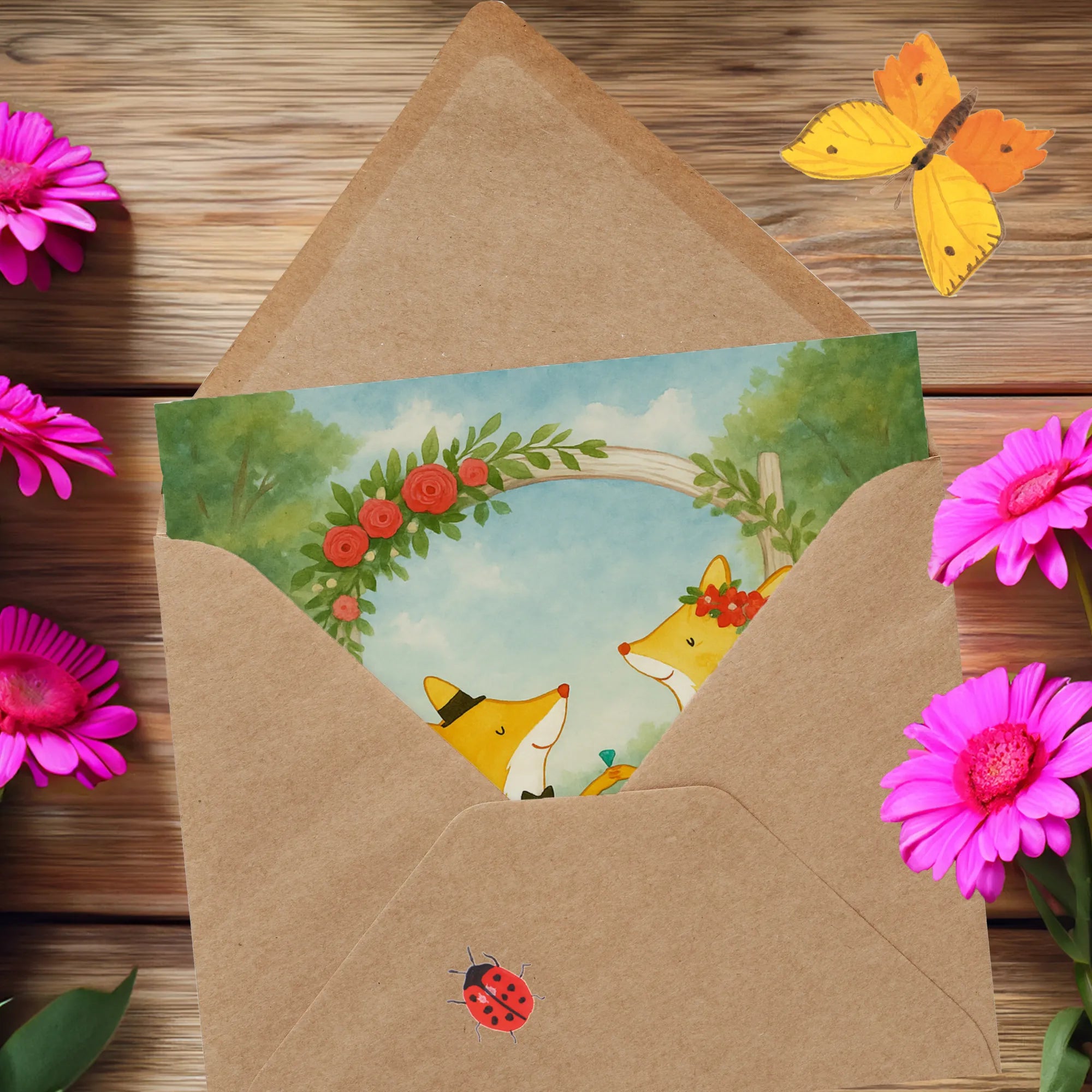 Deluxe Karte Füchse Hochzeit Design - mit Spruch
