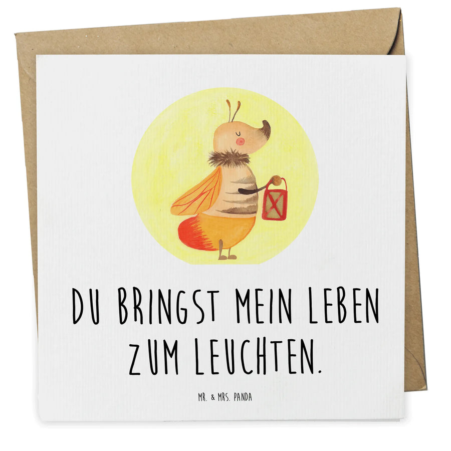 Auf der Vorderseite leuchtet das süße Glühwürmchen mit einer Laterne in der Hand, ein Symbol der Hoffnung und des Lichtes. Als Motto trägt die Karte den herzlichen Spruch: "Du bringst mein Leben zum Leuchten." Diese warmherzige Botschaft wird jeden Beschenkten zum Lächeln bringen und ihm zeigen, wie wichtig er dir ist. Die matte Innenseite lässt viel Platz für persönliche, handgeschriebene Grüße, während die hochglänzend veredelte Vorderseite und Rückseite die Karte zu etwas ganz Besonderem machen.