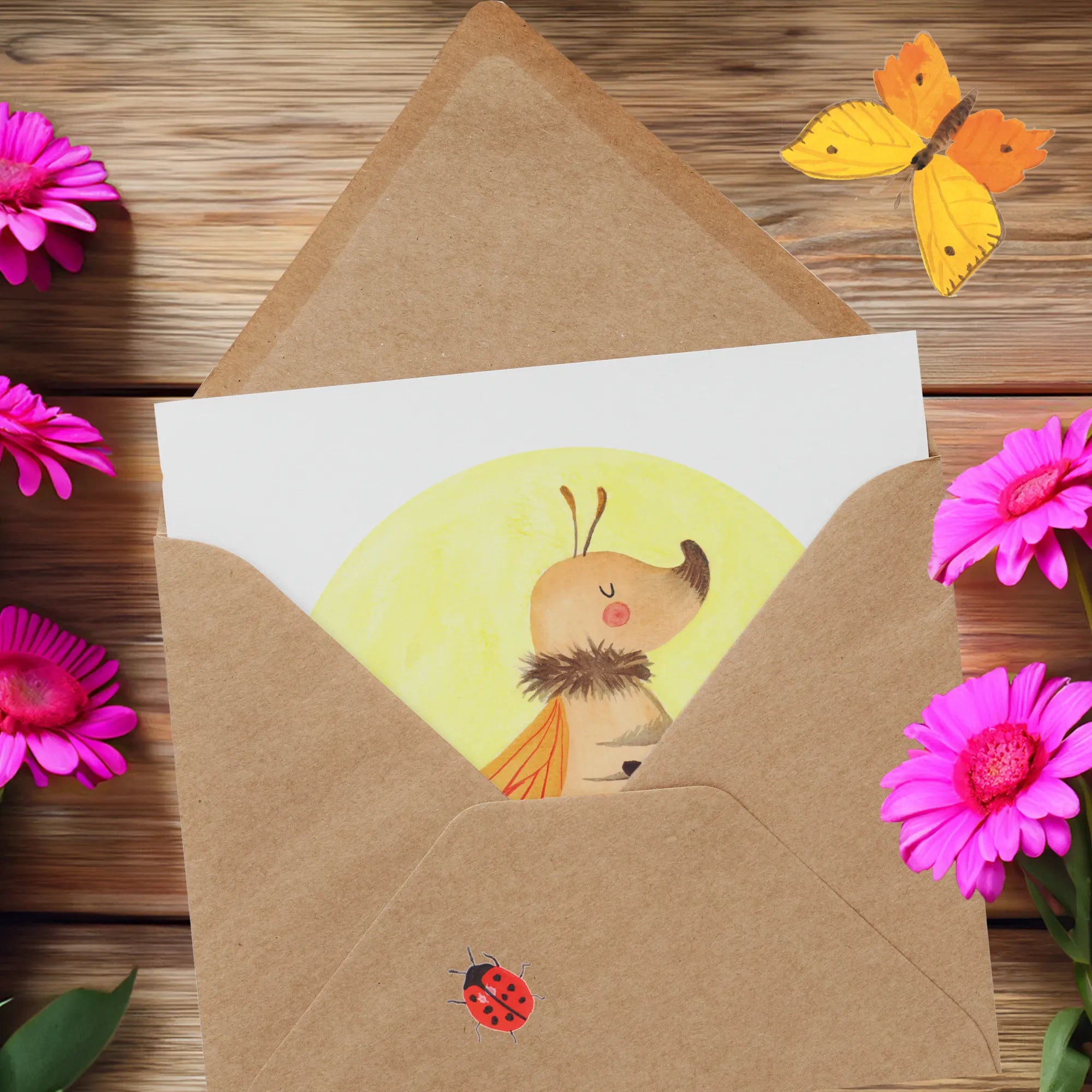 Das kleine Glühwürmchen auf der Vorderseite, das eine Laterne in seinen zarten Händen hält, vermittelt ein Gefühl von Hoffnung und Wärme. Der Slogan "Du bringst mein Leben zum Leuchten." macht diese Karte zu einem perfekten Liebesbeweis für deinen Lieblingsmenschen. Mit ihrem glänzenden Finish auf der Vorderseite und der matten Innenseite eignet sie sich ideal zum Beschriften und macht das Verschenken so einfach und besonders.