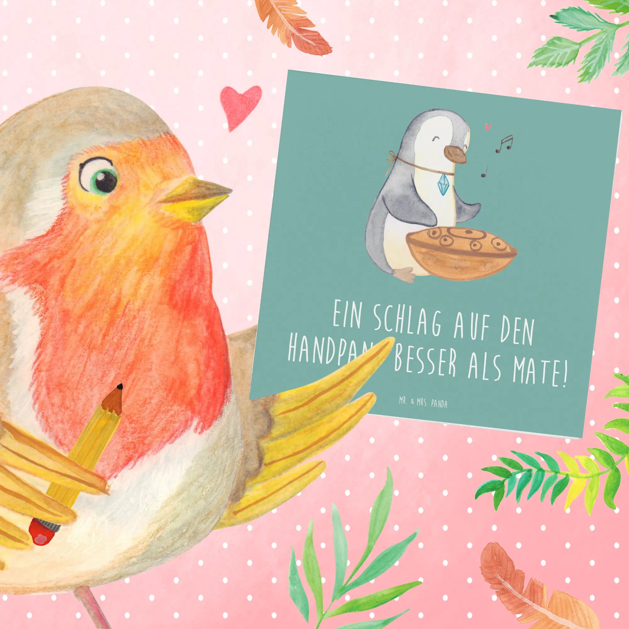 Die Deluxe Karte mit dem wunderschönen Handpan-Motiv aus der Kollektion Musizieren & Instrumente von Mr. & Mrs. Panda ist das perfekte Geschenk für Musikliebhaber und kreative Seelen!