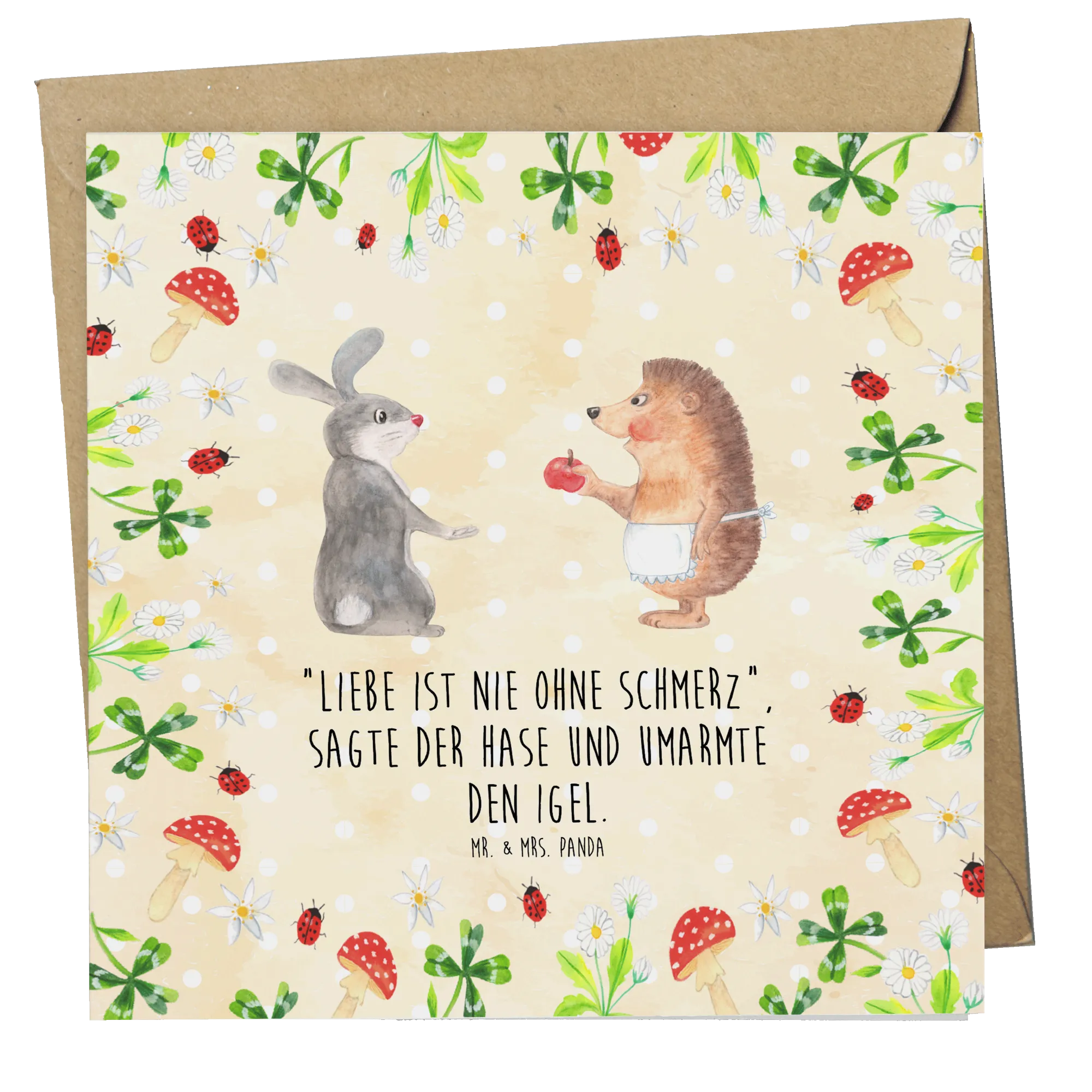 Die Deluxe Karte "Liebe ist nie ohne Schmerz" von Mr. & Mrs. Panda ist das perfekte Geschenk für alle, die die schönen, aber auch herausfordernden Seiten der Liebe feiern möchten. Diese hochwertige quadratische Karte mit dem bezaubernden Motiv eines süßen Hasen und eines niedlichen Igels vermittelt die Botschaft, dass Liebe nicht immer einfach ist. Doch genau in diesen Momenten zeigt sich die wahre Stärke der Zuneigung.