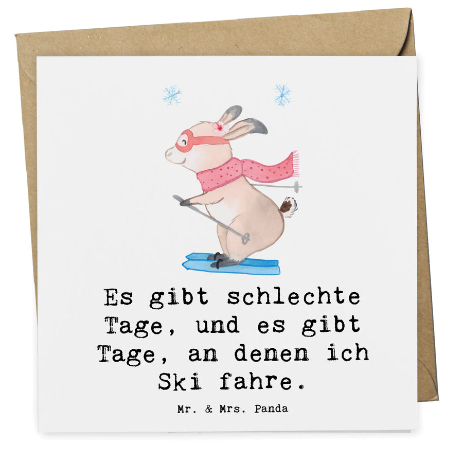 Du suchst das perfekte Geschenk für einen Ski-Liebhaber? Dann ist die Deluxe Karte "Bär Skifahren Tage" von Mr. & Mrs. Panda genau das Richtige! Diese besonders hochwertige quadratische Karte ist mit einem niedlichen Motiv eines kleinen Bären, der fröhlich Ski fährt, und dem Spruch "Es gibt schlechte Tage, und es gibt Tage, an denen ich Ski fahre." bedruckt. Ob für einen Geburtstag, eine Hochzeit oder einfach nur als liebevoller Gruß, diese Karte begeistert mit ihrer fröhlichen Botschaft und dem herzerwärmenden Design.