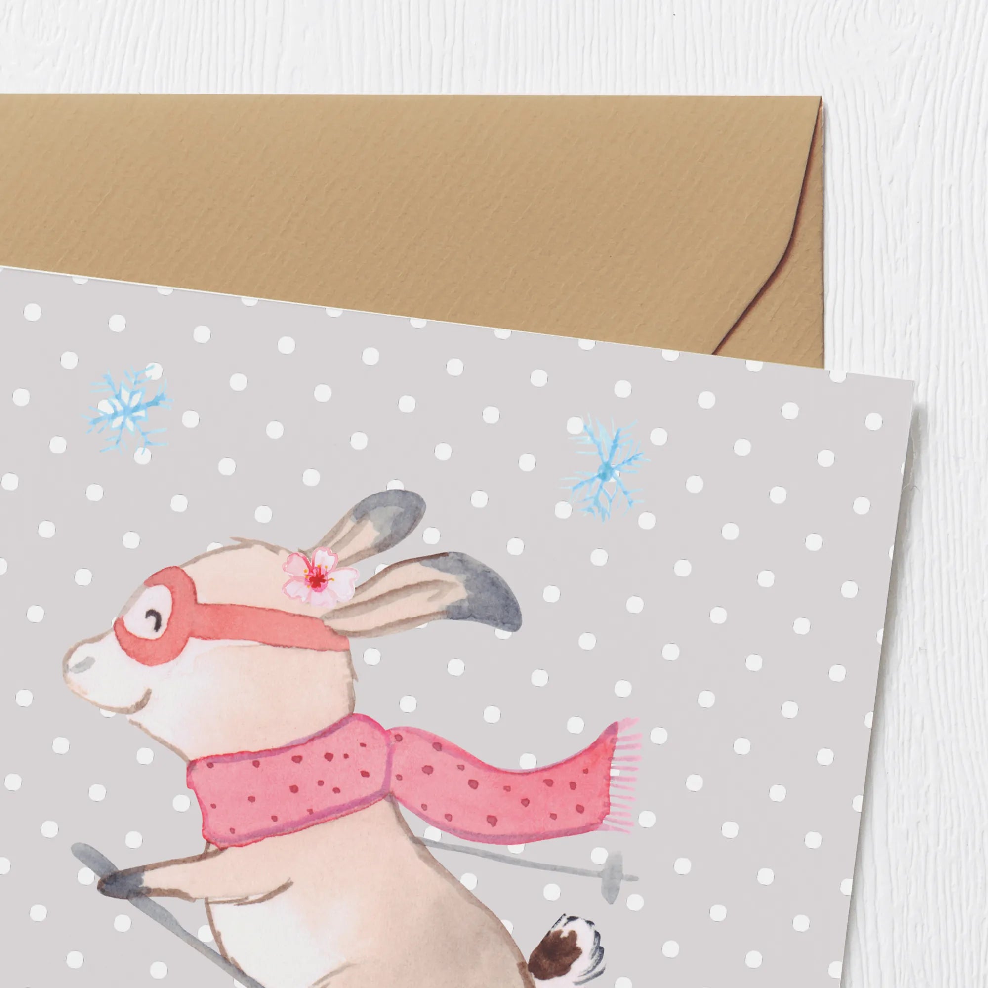 Deluxe Karte Hase Skifahren - mit Spruch - Weiß