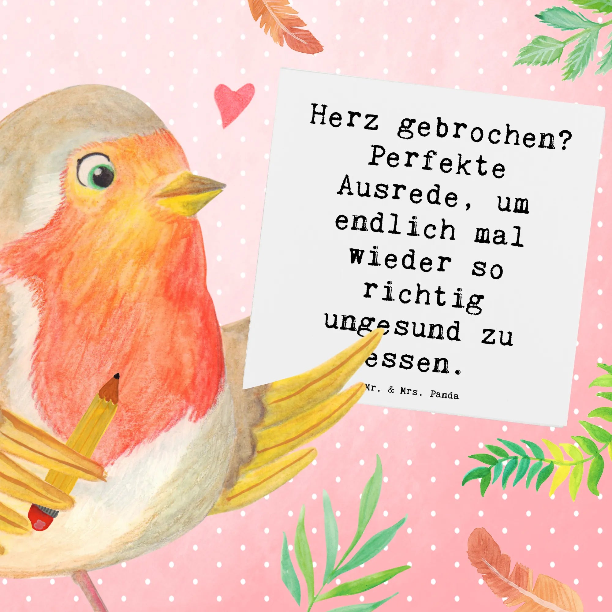 Unsere Panda-Fans suchen auch nach: Liebeskummer, Herz gebrochen, ungesund essen, Trost, Selbstmitgefühl, Sprüche, Soulfood, Schokolade, Pizza, Eiscreme, Wohlfühlmomente, positive Stimmung, Freundschaftsgeschenk, Aufmunterung