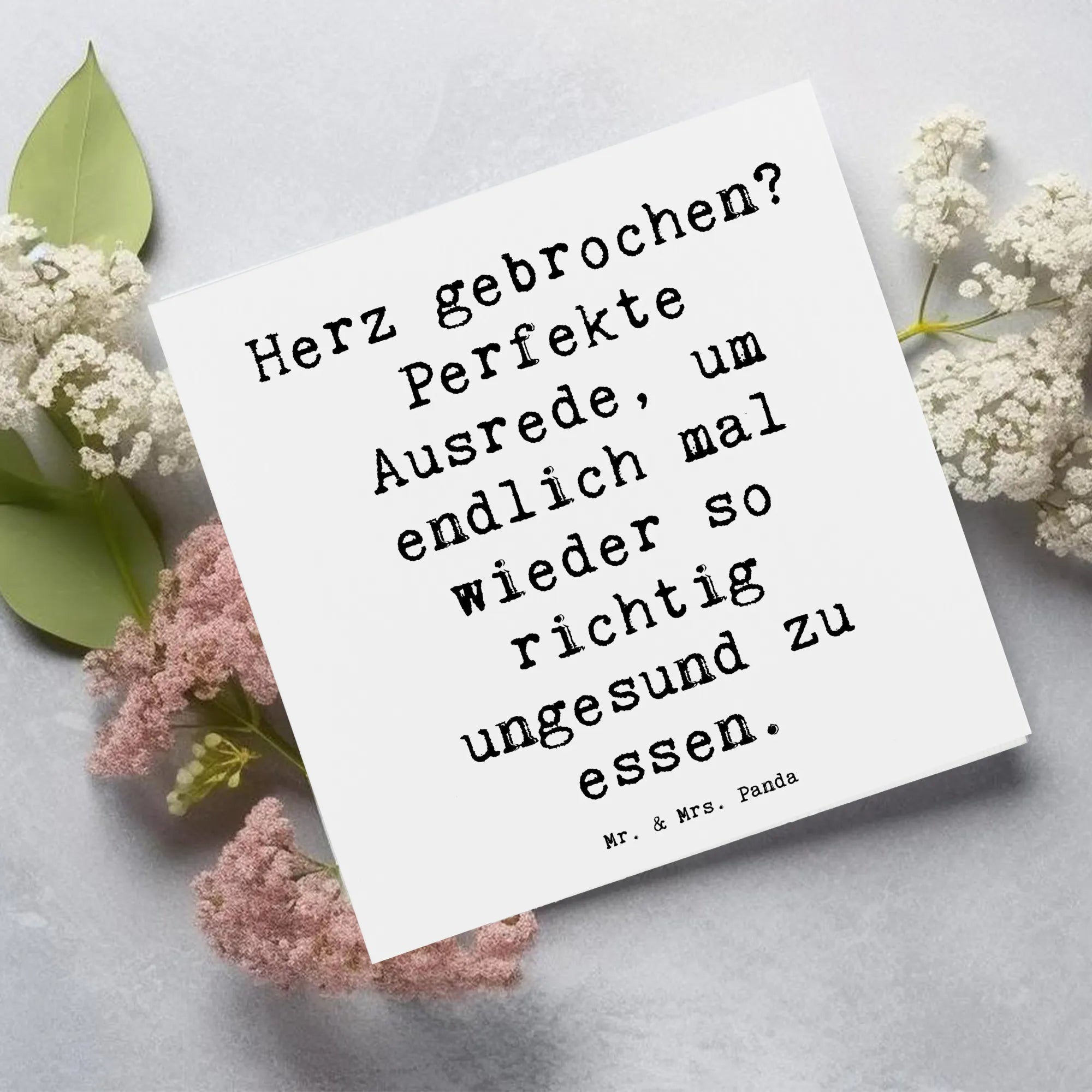 Die Deluxe Karte zum Thema Liebeskummer aus der Kollektion "Gefühle & Stimmungen" von Mr. & Mrs. Panda ist das perfekte Geschenk für all jene, die in einer schweren Zeit Trost und Unterstützung benötigen. Jeder kennt die Momente, in denen das Herz schwer und voller Schmerz ist. Diese hochwertige, quadratische Karte ist mit einem liebevollen Spruch bedruckt: "Herz gebrochen? Perfekte Ausrede, um endlich mal wieder so richtig ungesund zu essen." Diese humorvolle und zugleich einfühlsame Botschaft sorgt garantiert für ein Schmunzeln, selbst in den düstersten Zeiten.