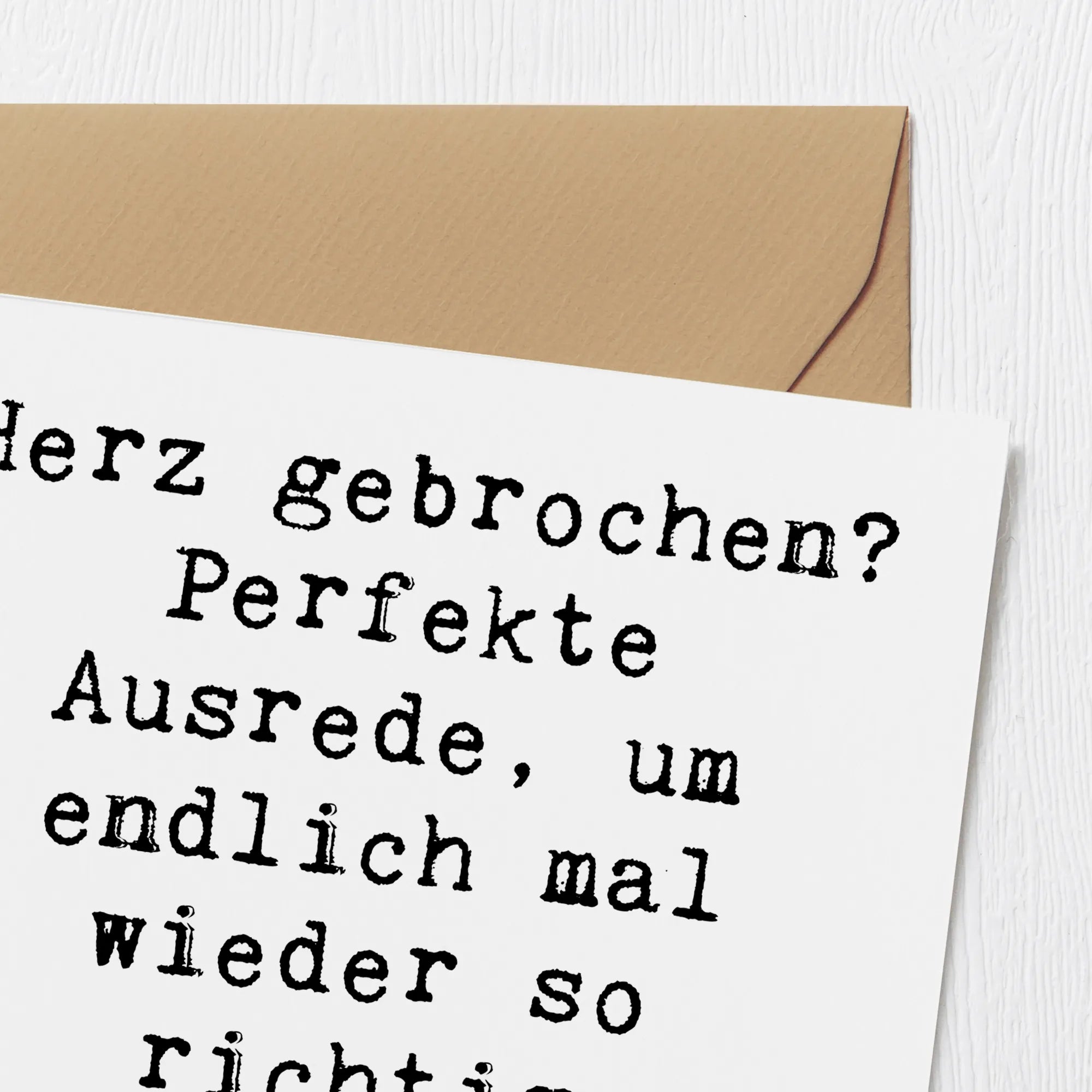 Der liebevoll gestaltete und hochwertige Umschlag rundet das Gesamtbild ab und macht die Übergabe zu einem besonderen Erlebnis. Wenn du also jemanden kennst, der gerade eine Trennung durchlebt oder einfach nur einen kleinen Aufmunterer benötigt, dann ist diese Karte genau das Richtige. Sie passt perfekt zu Anlässen wie Abschied, Jubiläum oder einfach als kleine Geste der Zuneigung.