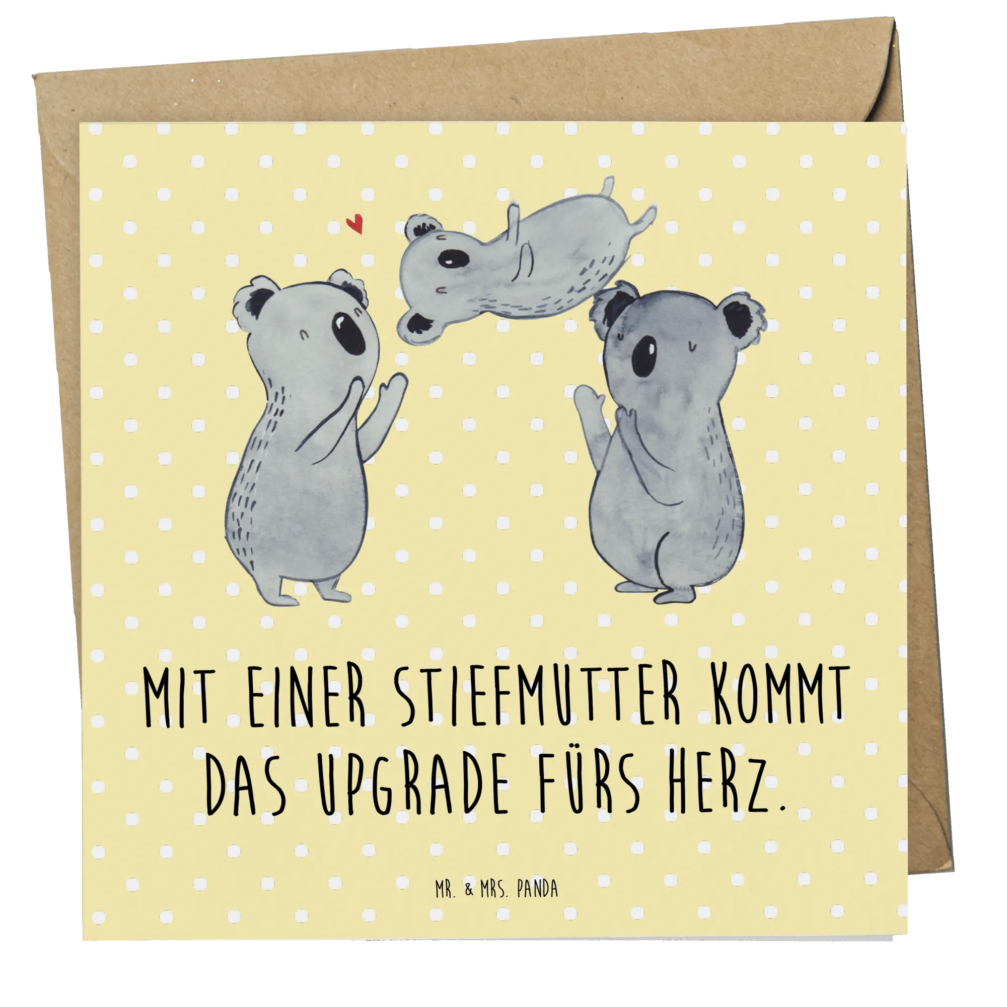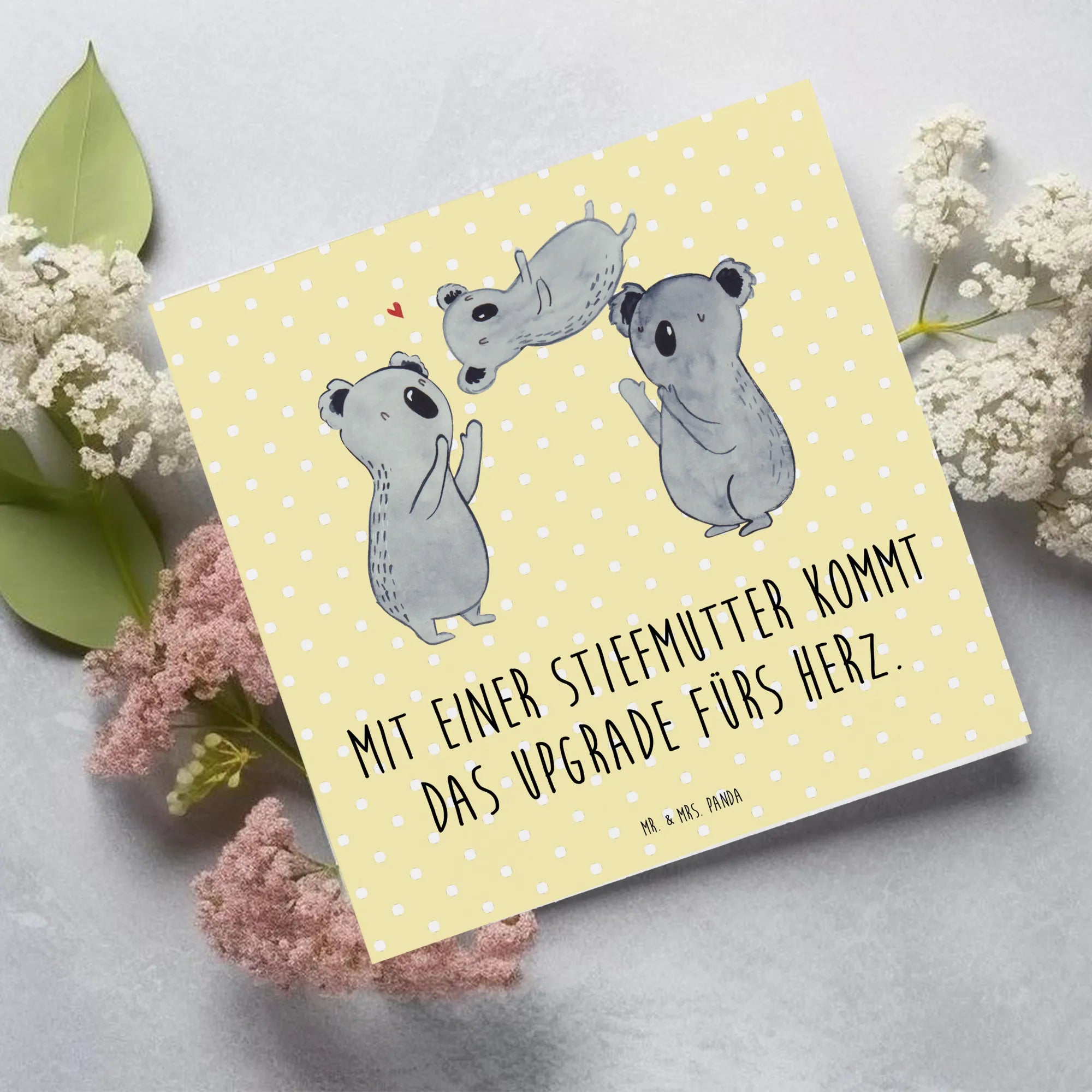 Zeig deiner Stiefmutter, wie besonders sie ist! Die Karte kommt mit einem passenden edlen Umschlag, so dass du sie gleich weiter verschenken kannst. Bei Mr. & Mrs. Panda steht die Familie im Mittelpunkt – entdecke die Freude daran, Familie zu feiern! Die Kollektion Familie & Verwandte bietet vielfältige Optionen für alle Familienmitglieder, und diese Karte ist dabei ein echtes Highlight – ideal für jeden Anlass.
