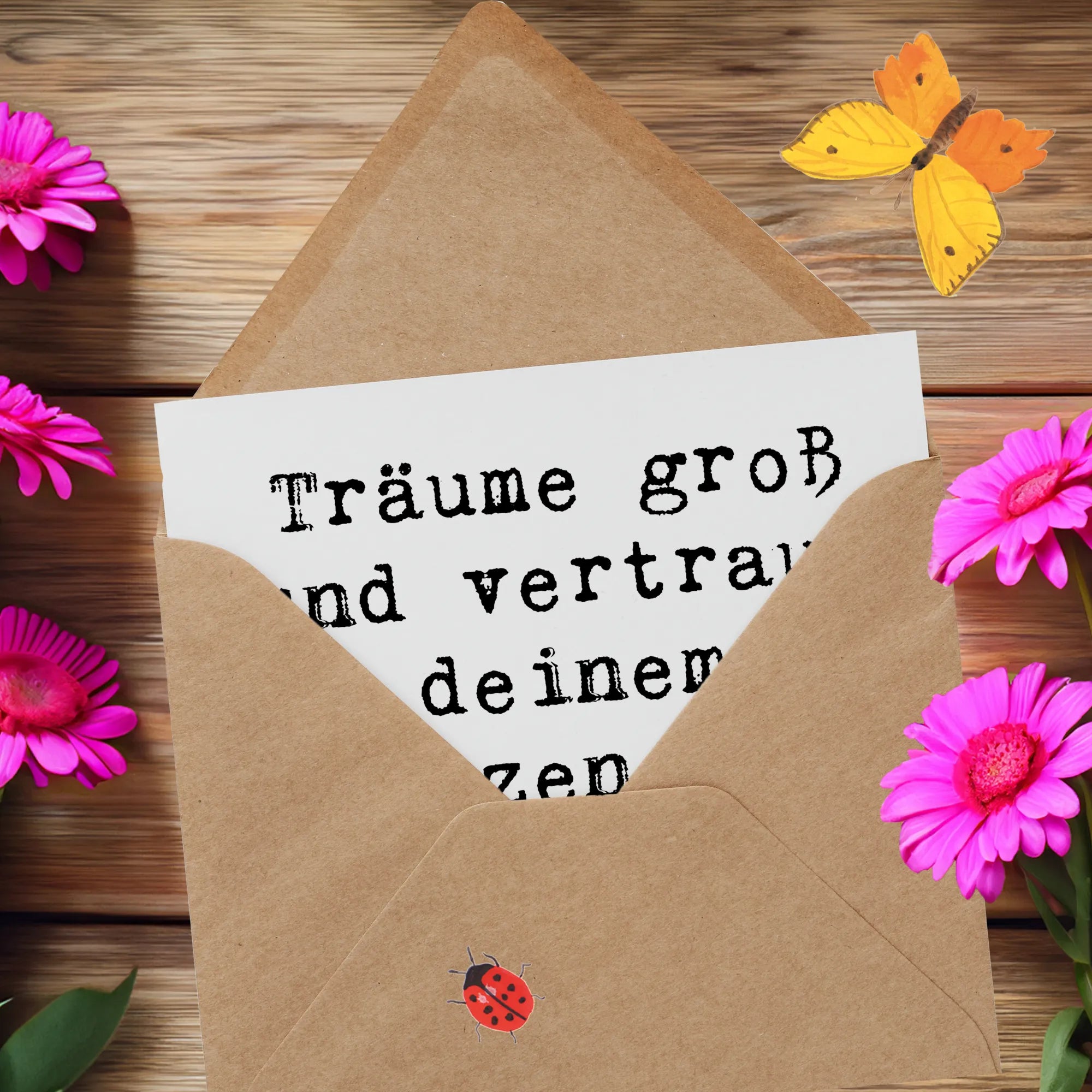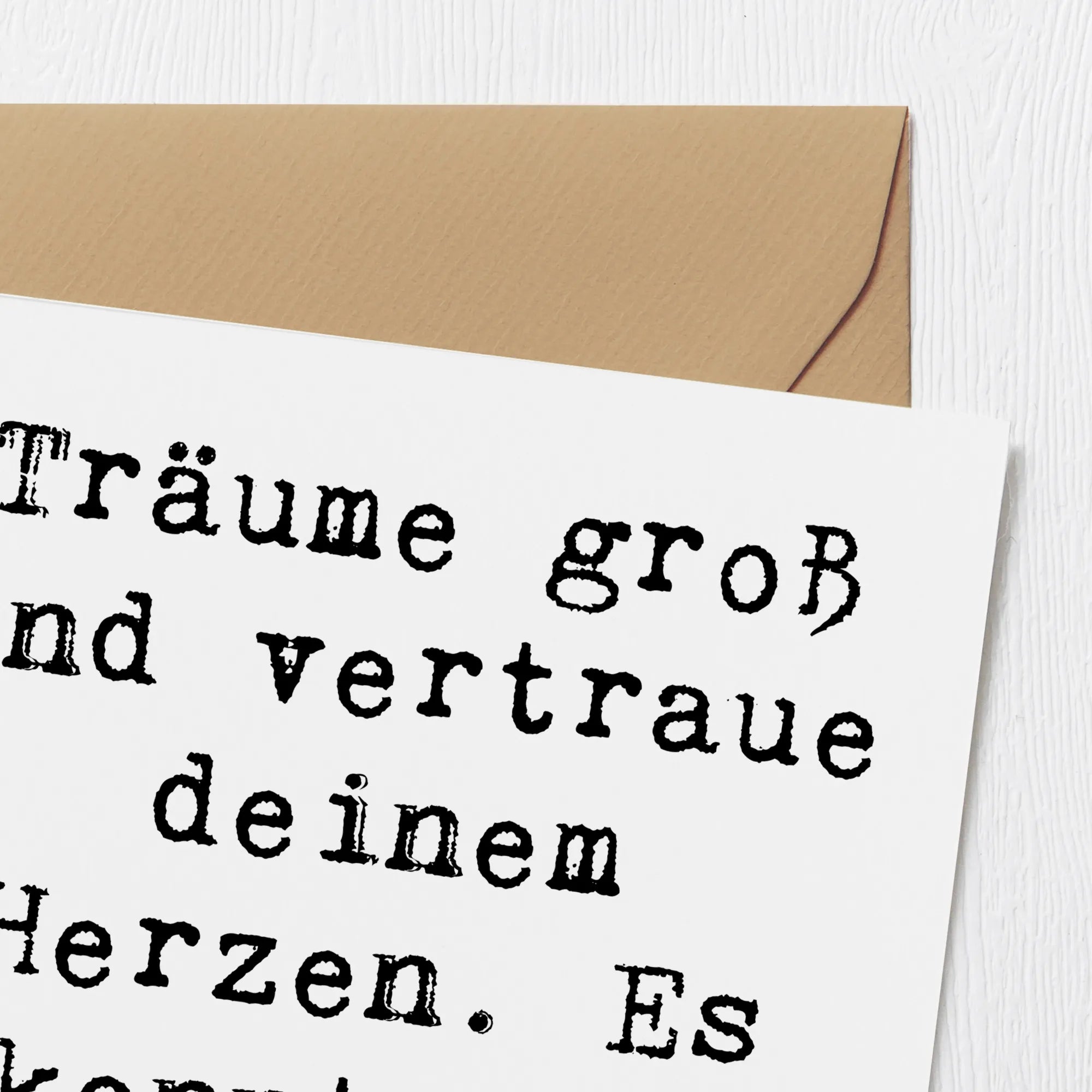Träume groß und vertraue deinem Herzen. Manchmal fühlt es sich an, als ob der Weg unklar und voller Hindernisse ist, aber dein Herz kennt den richtigen Pfad. Es ist dein innerer Kompass, der dich durch das Leben führt und deine wahren Sehnsüchte und Ziele kennt. Folge ihm mit Vertrauen und du wirst deinen Weg finden und deine Träume verwirklichen.