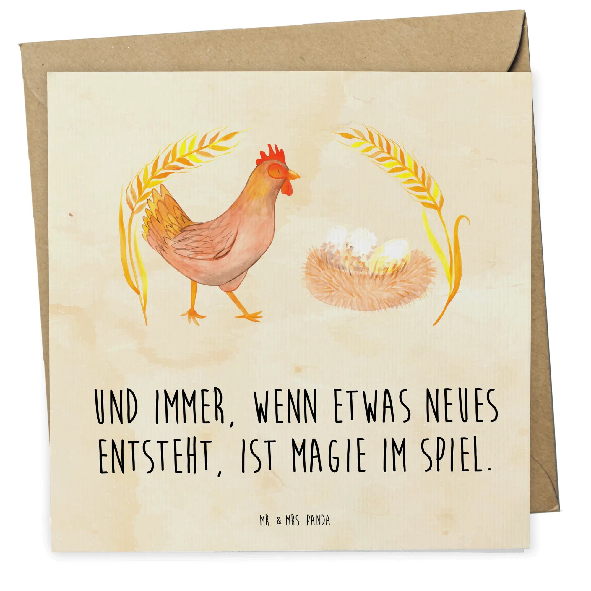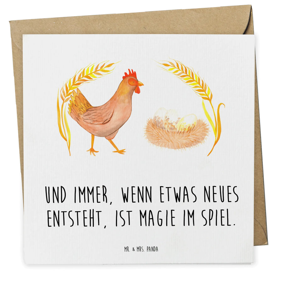 Diese wunderschöne quadratische Grußkarte zeigt Berta Henne, die stolz durch die Welt stolziert, und trägt den liebevollen Spruch: „Und immer, wenn etwas neues entsteht, ist Magie im Spiel.“ Eine Karte, die perfekt ist, wenn Du zur Geburt, zur Schwangerschaft, zur Hochzeit im Landhausstil oder einfach als herzliche Glückwunschkarte etwas Besonderes schenken möchtest. 🐔✨