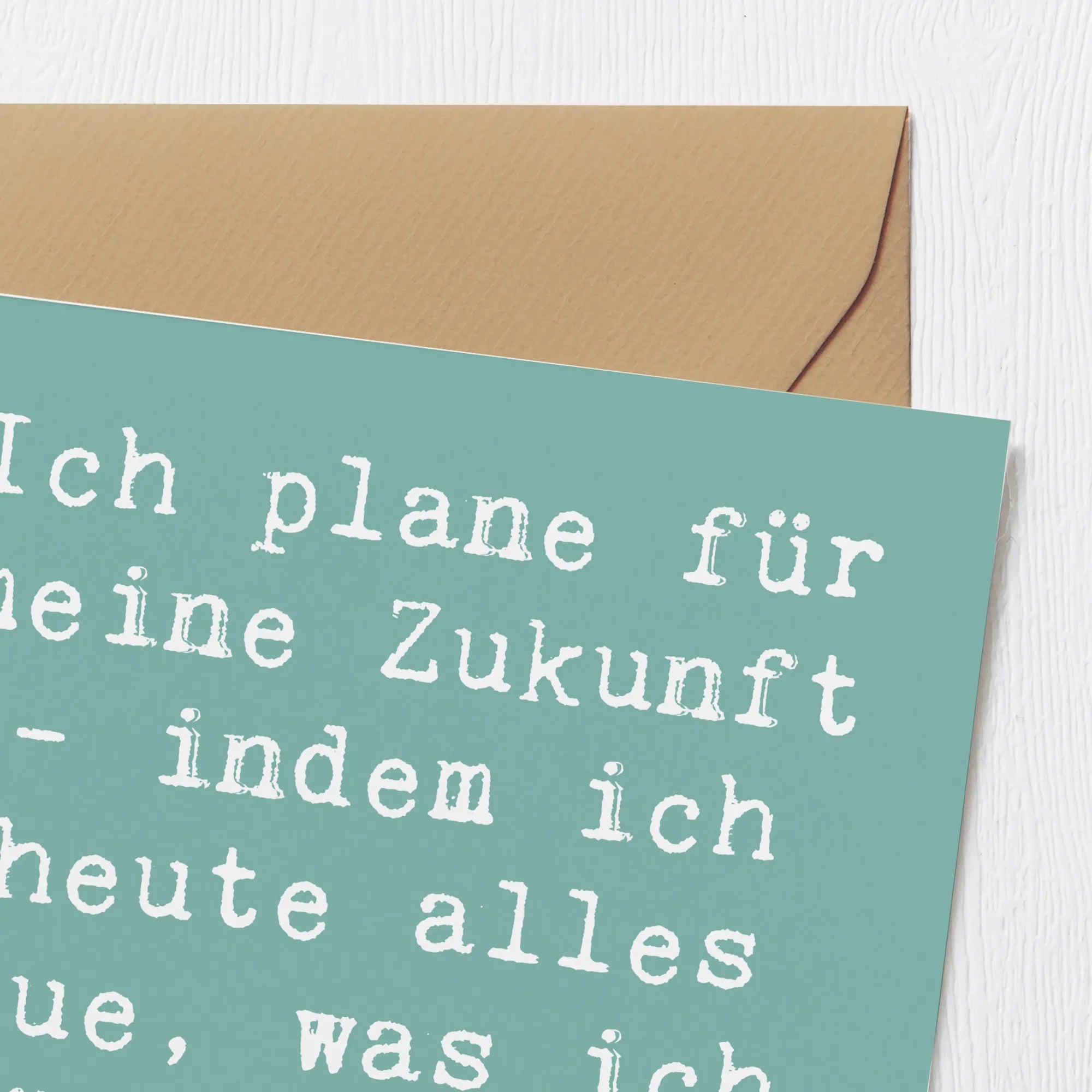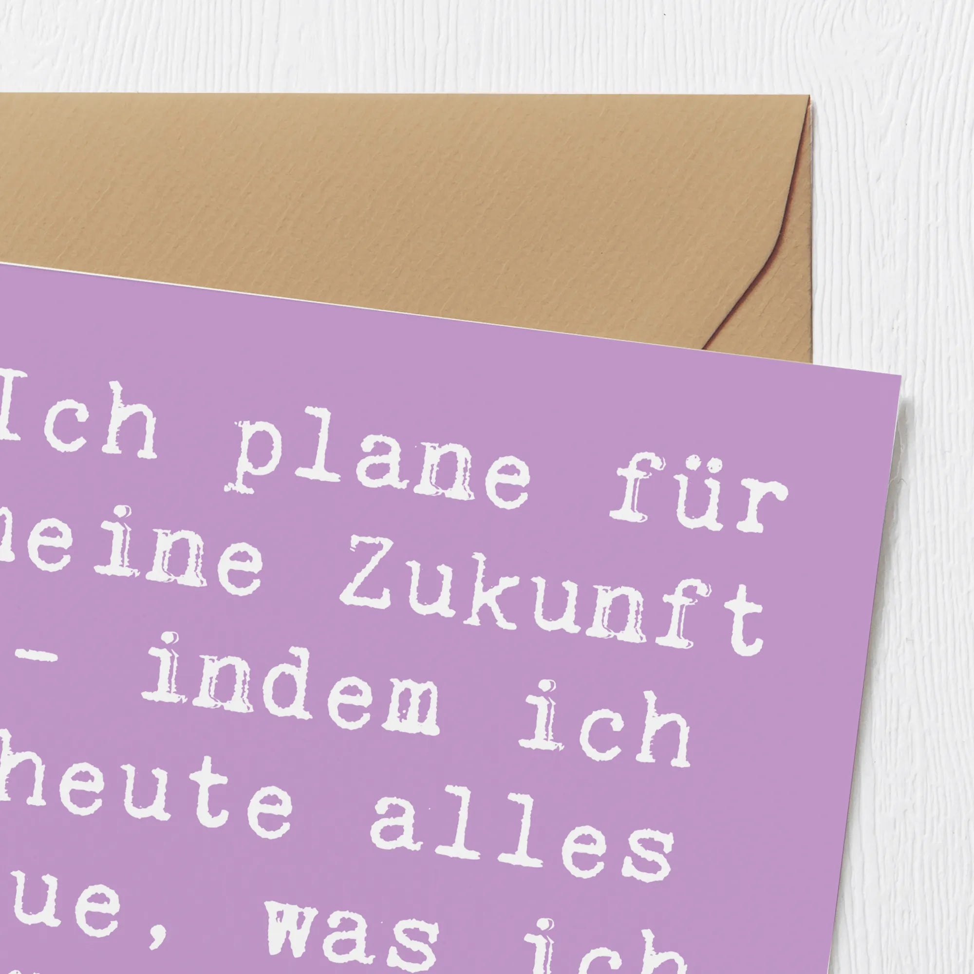 Der herzliche Spruch "Ich plane für meine Zukunft - indem ich heute alles tue, was ich später bereuen werde" wird sicher inspirieren und motivieren. Sie ist perfekt, um individuelle Grüße oder Glückwünsche zu überbringen.