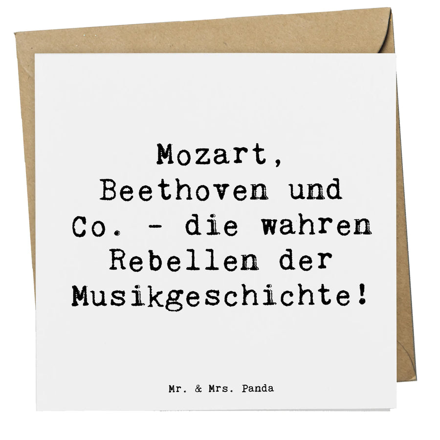 Das stilvolle Design zeigt die Botschaft: "Mozart, Beethoven und Co. - die wahren Rebellen der Musikgeschichte!" und bringt damit nicht nur Freude, sondern auch eine Prise Humor in das Leben der Beschenkten. Ideal für alle, die sich für klassische Musik begeistern: Von den grandiosen Symphonien von Beethoven über die filigranen Kompositionen von Mozart bis hin zu den fesselnden Opern von Verdi – der musikalische Hintergrund dieser Karte wird jedem Musikliebhaber das Herz erwärmen.