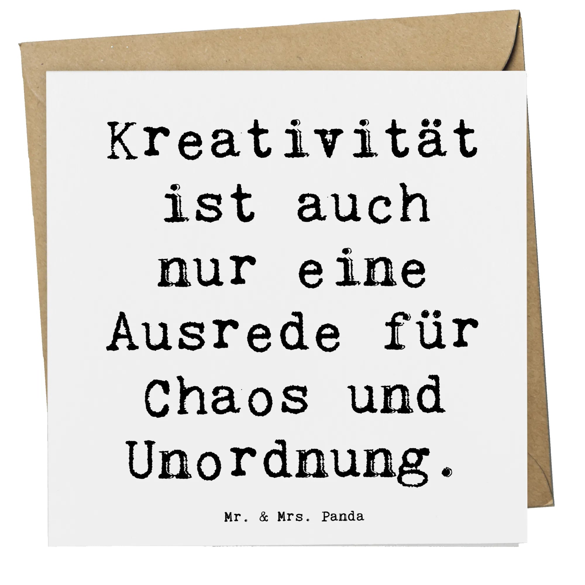 Sie besticht durch ihr stilvolles Design und den liebevoll gestalteten Spruch: "Kreativität ist auch nur eine Ausrede für Chaos und Unordnung." Diese hochwertige, quadratische Karte hat die Maße 140 mm x 140 mm und begeistert durch ihren edlen Umschlag sowie das hochwertig verarbeitete Kartonmaterial mit einer Stärke von 300 Gramm.