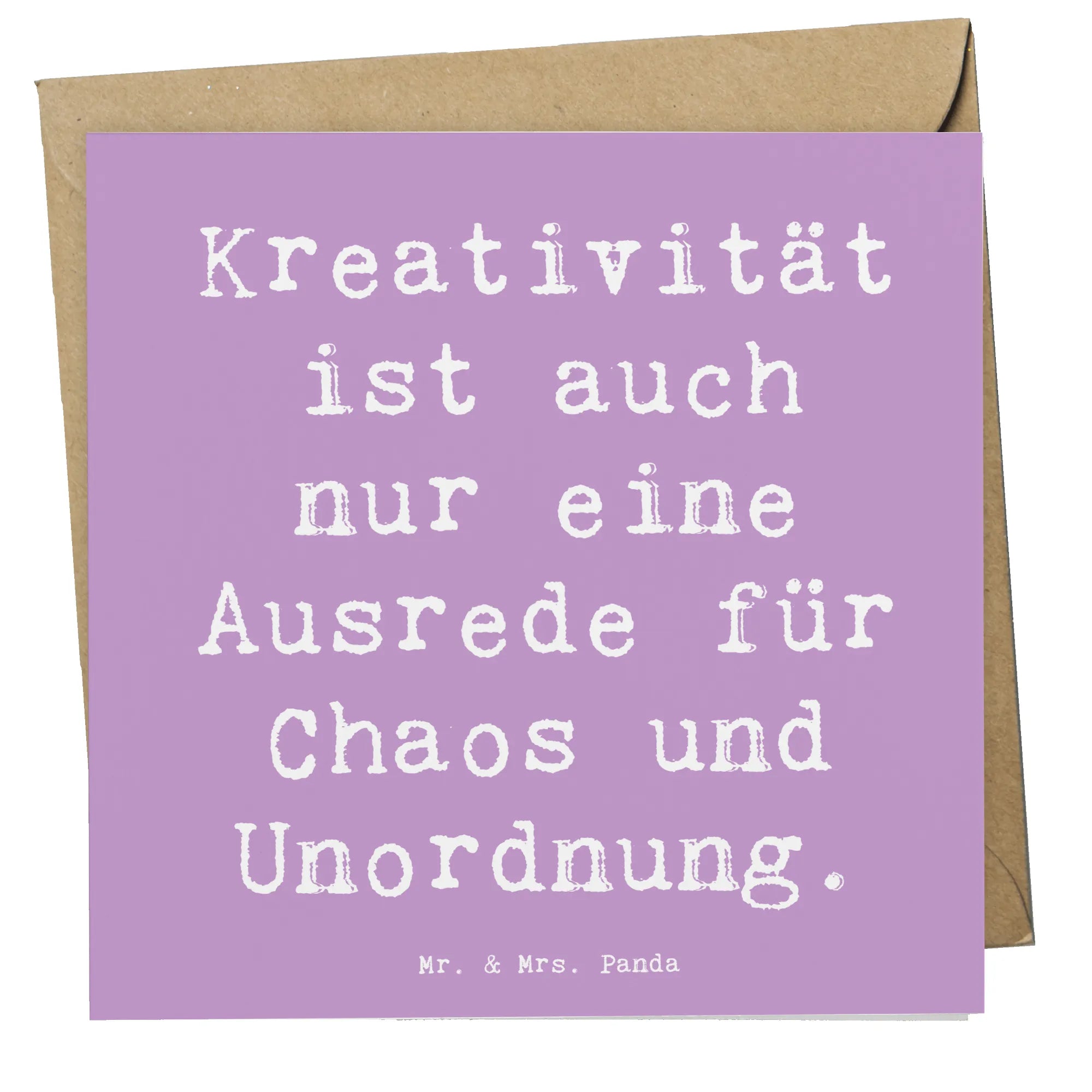 Die Deluxe Karte "Kreativität" von Mr. & Mrs. Panda ist das perfekte Geschenk für kreative Köpfe und alle, die ein wenig mehr Farbe in ihren Alltag bringen möchten. Mit einem wunderbaren Spruch, der sagt: "Kreativität ist auch nur eine Ausrede für Chaos und Unordnung", spricht diese Karte jeden an, der ein Herz für das Besondere hat.
