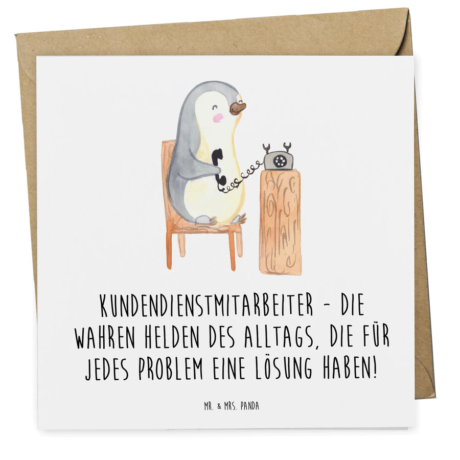 Die Deluxe Karte 'Kundendienstmitarbeiter' aus der 'Danke'-Kollektion von Mr. & Mrs. Panda ist das perfekte Geschenk für alle, die für die kleinen bzw. großen Helden des Alltags ein Dankeschön aussprechen möchten. Diese hochwertige, quadratische Karte hat die Maße 140 mm x 140 mm und ist aus 300 Gramm schwerem Karton gefertigt, der sowohl hochwertig als auch umweltfreundlich ist. Die glänzend veredelte Vorderseite besticht durch ein liebevolles Design und einem Slogan, der jeden lächeln lässt: "Kundendienstmitarbeiter - die wahren Helden des Alltags, die für jedes Problem eine Lösung haben!". Hinterlasse bei Freunden, Familie oder Kollegen einen bleibenden Eindruck, indem du dank der großzügigen blanko Innenseite deine persönlichen Worte und Glückwünsche hinterlässt.