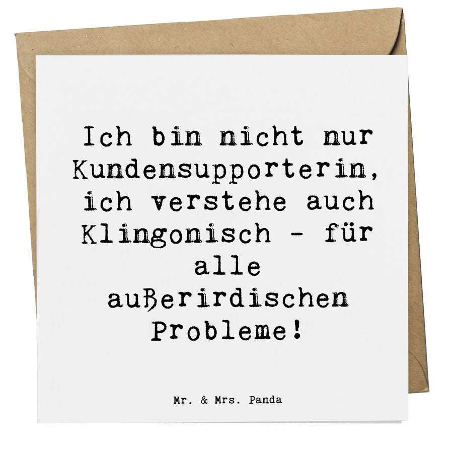 Die Deluxe Karte "Kundensupporterin" aus der einzigartigen Berufe Kollektion von Mr. & Mrs. Panda ist mehr als nur eine Karte – sie ist ein kleines Kunstwerk und eine herzliche Geste der Wertschätzung. Mit einem liebevollen Spruch, der besagt: "Ich bin nicht nur Kundensupporterin, ich verstehe auch Klingonisch - für alle außerirdischen Probleme!", bringt sie ein Lächeln auf die Gesichter der Empfänger.
