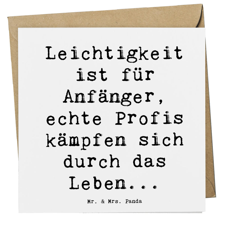 Diese wunderschöne Klappkarte aus der Mr. & Mrs. Panda Kollektion Gefühle & Stimmungen trägt den herzhaften Spruch „Leichtigkeit ist für Anfänger, echte Profis kämpfen sich durch das Leben..." und trifft damit mitten ins Leben. Ob als Glückwunschkarte Leichtigkeit, Spruchkarte oder liebevolle Grußkarte – sie ist perfekt, um Mut zu schenken und gleichzeitig ein Lächeln zu zaubern.