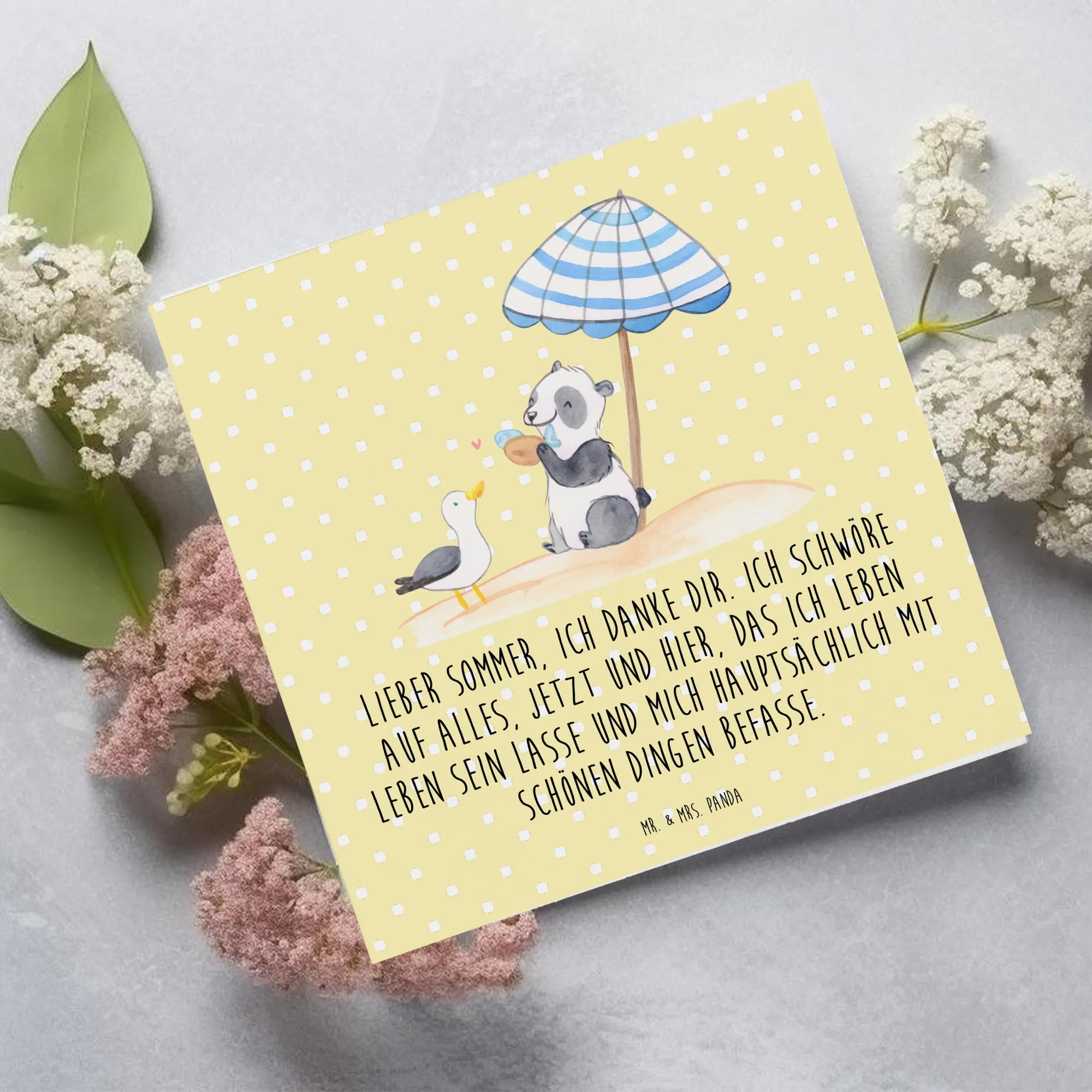 Die Deluxe Karte "Sommer" von Mr. & Mrs. Panda ist das perfekte Geschenk für alle, die die sonnige Jahreszeit lieben! In dieser hochwertigen Klappkarte vereinen sich Liebe zum Detail und zeitloses Design. Mit einer Größe von 140 mm x 140 mm und gefertigt aus edlem 300 Gramm Karton, strahlt diese Karte Qualität und Stil aus.