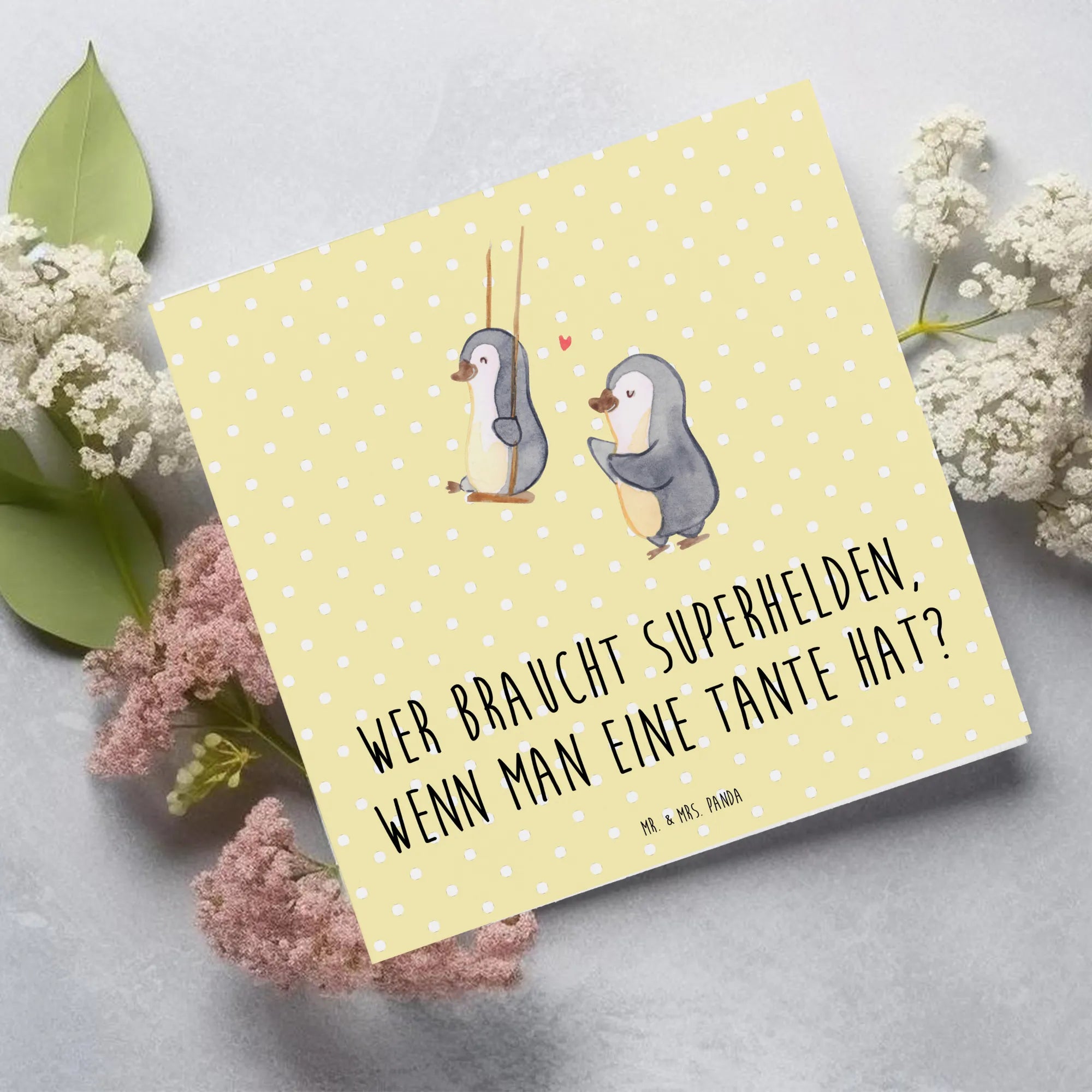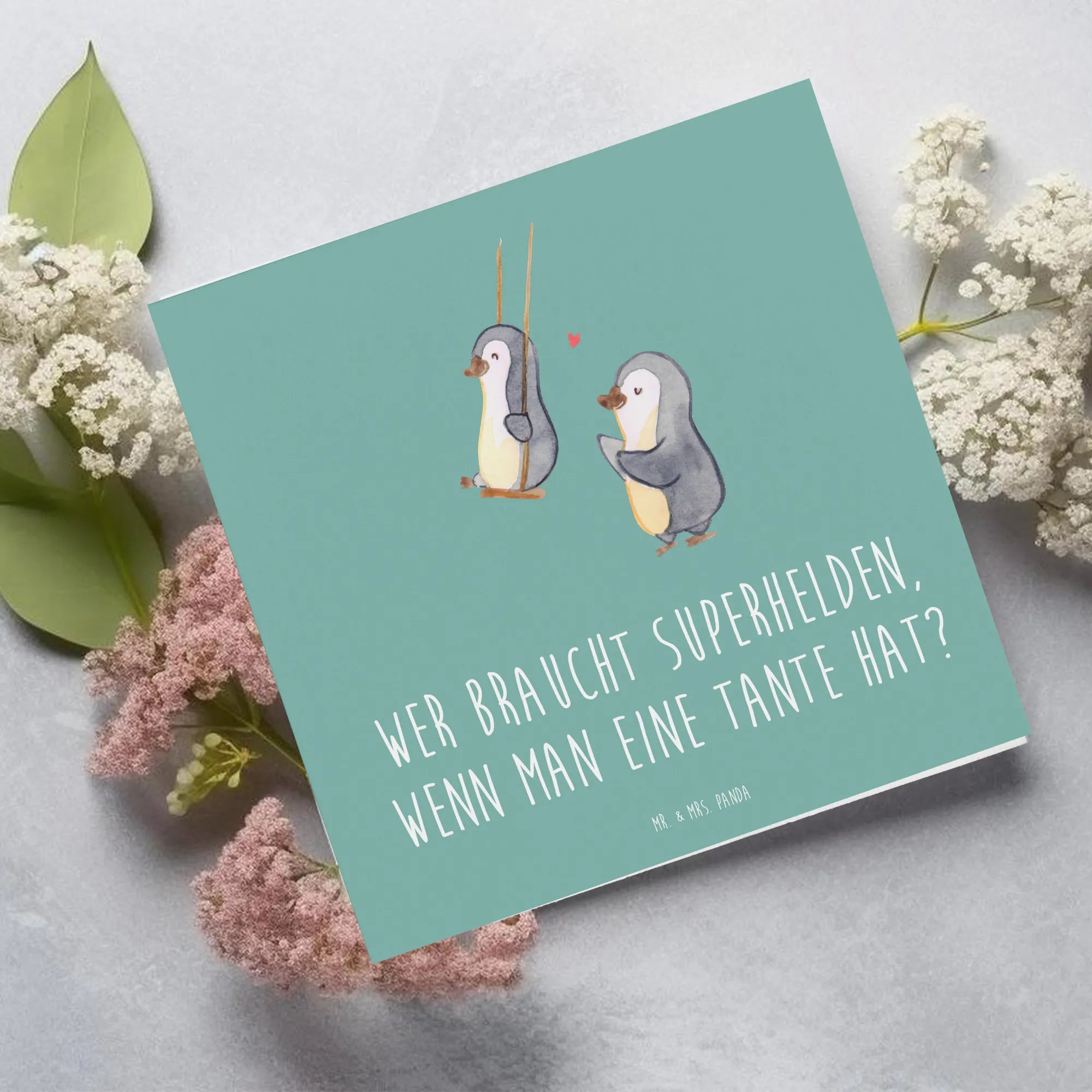 Unsere quadratische Deluxe Karte aus der Kollektion Familie & Verwandte von Mr. & Mrs. Panda bringt Gefühle direkt auf den Punkt: Mit dem herzlichen Spruch „Wer braucht Superhelden, wenn man eine Tante hat?“ und einer zarten Aquarell-Illustration ist sie die perfekte Grußkarte für jede Gelegenheit. 🎁