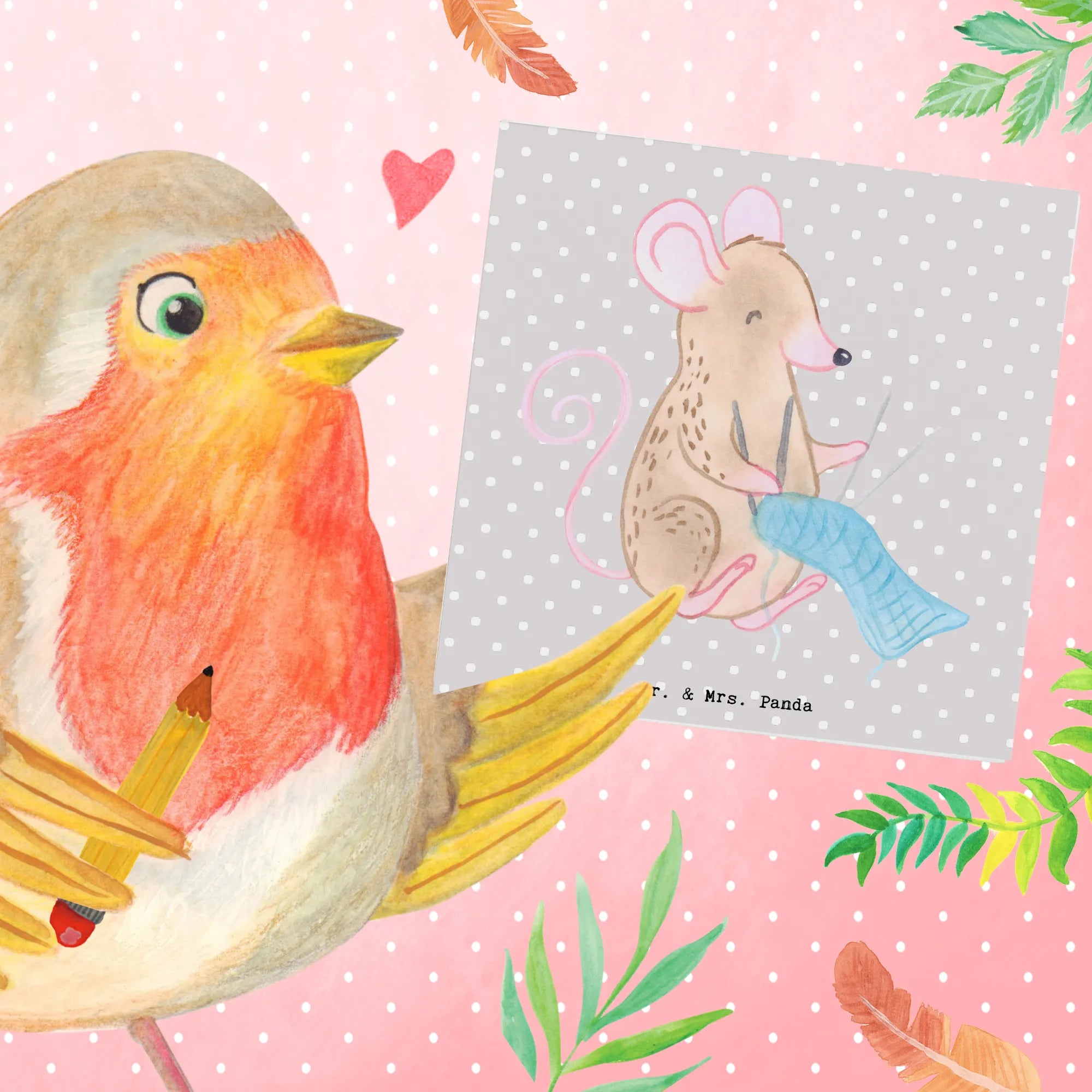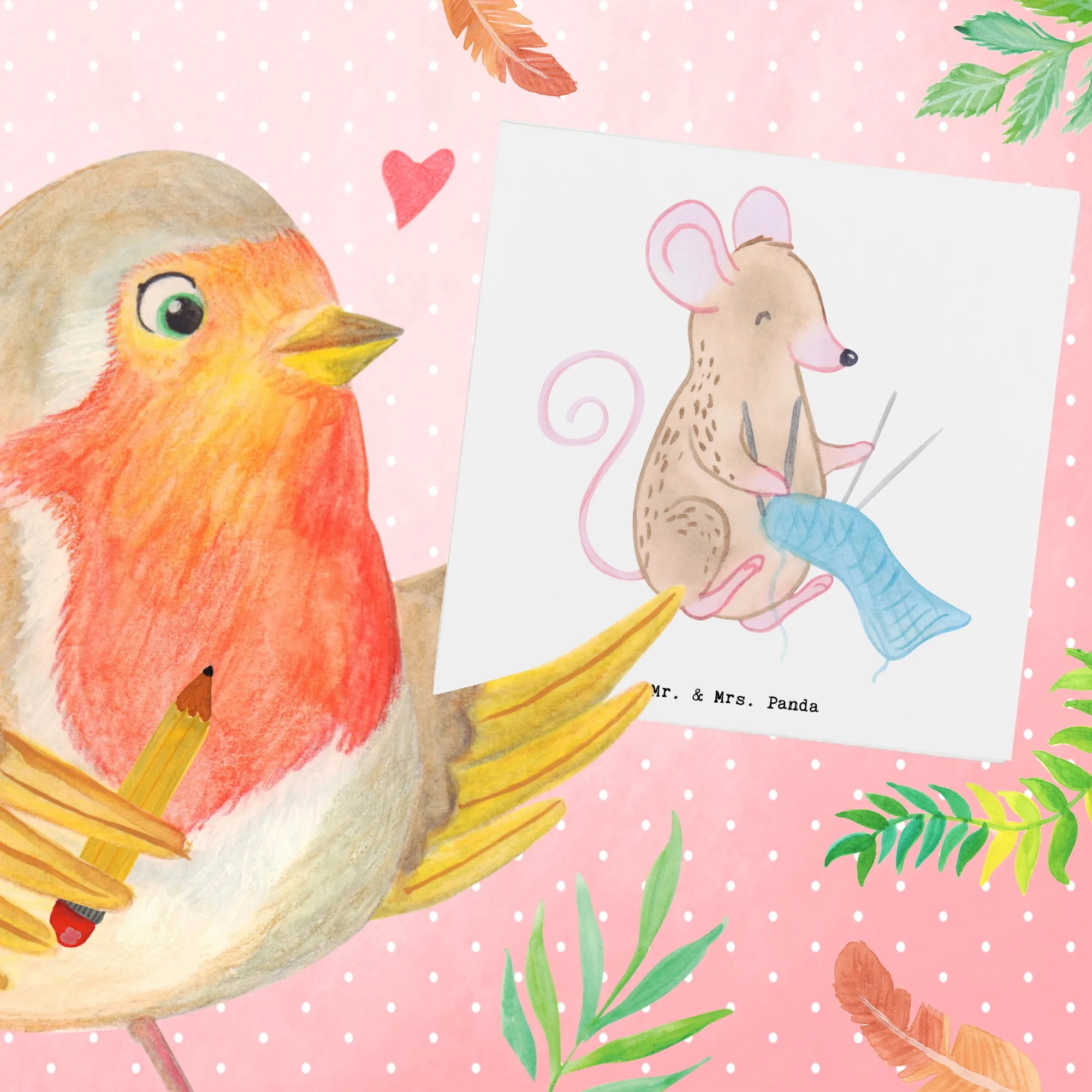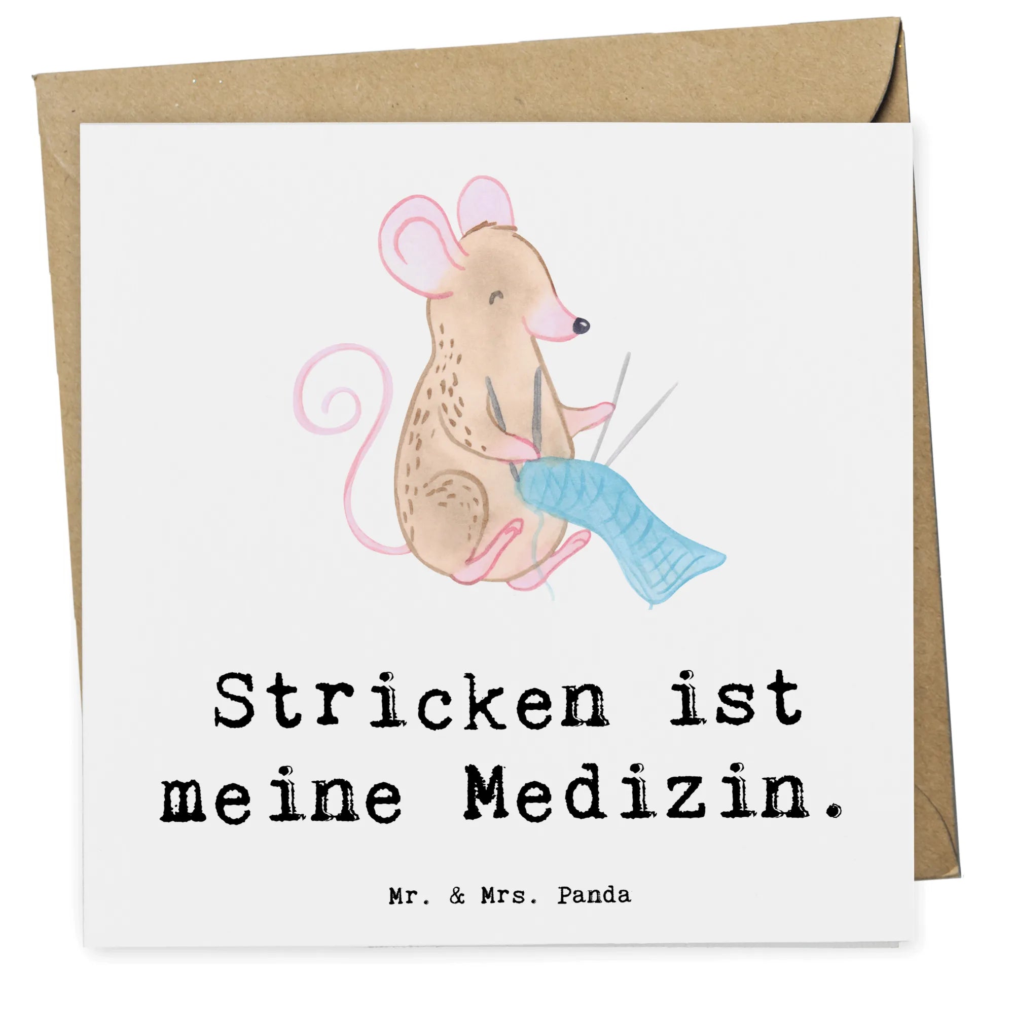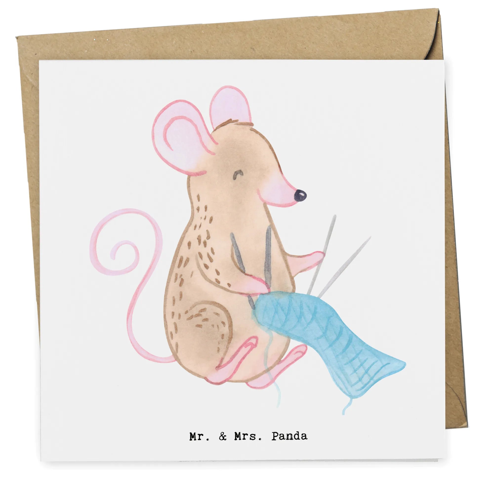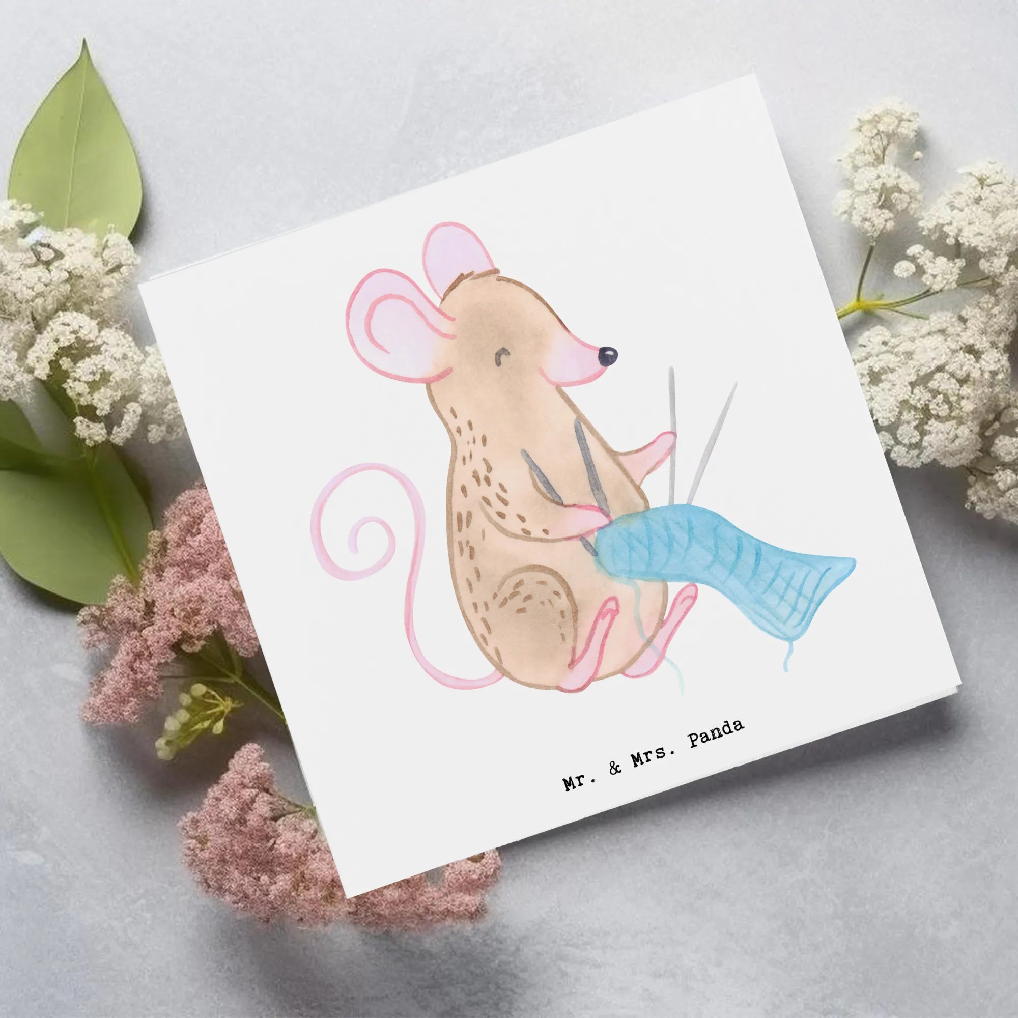 Die Deluxe Karte 'Maus Stricken Medizin' aus der exklusiven Hobby & Sport Kollektion von Mr. & Mrs. Panda ist das perfekte Geschenk für alle Strickliebhaber.