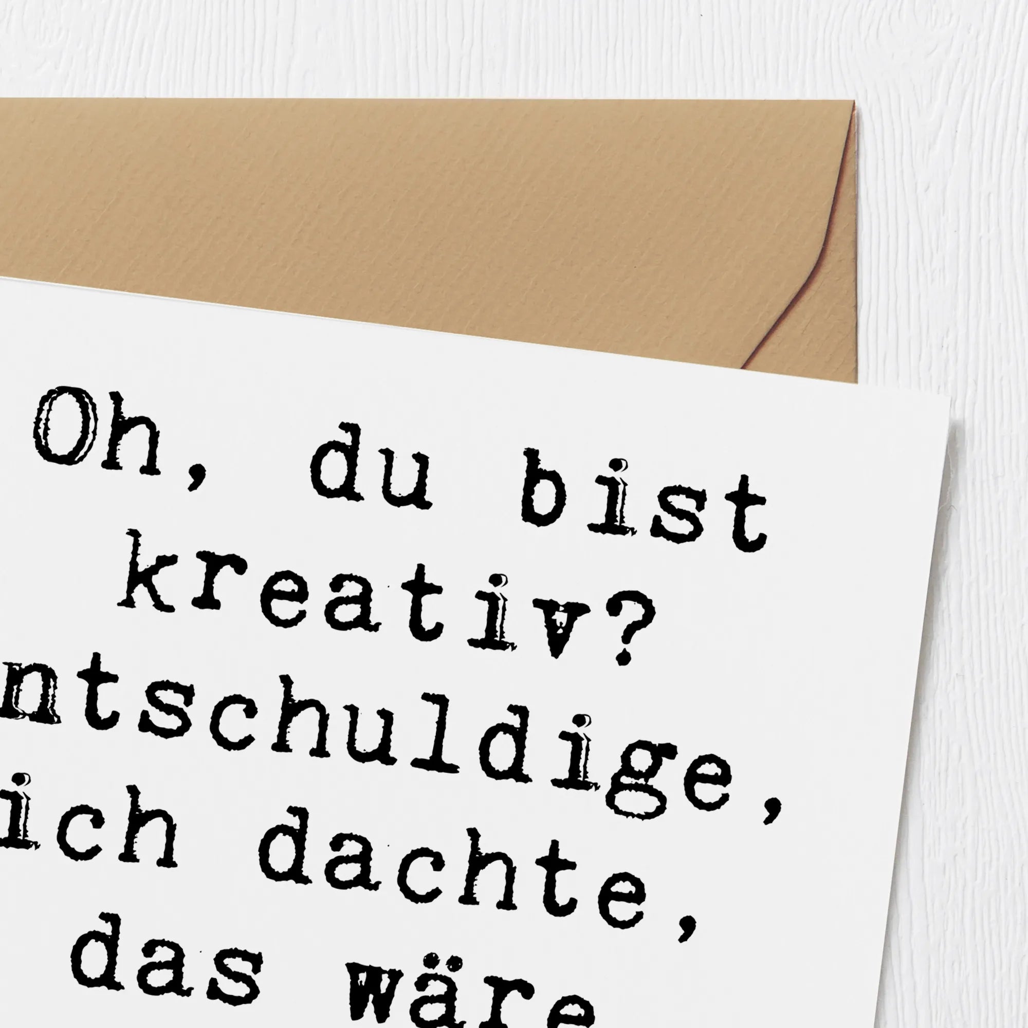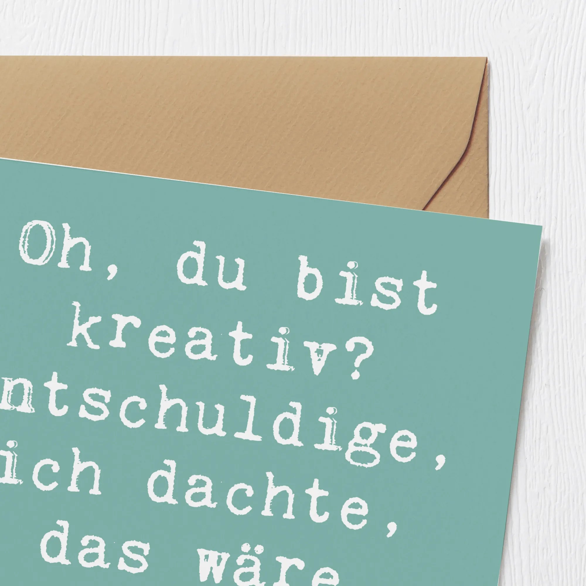 Mit dem Satz "Oh, du bist kreativ? Entschuldige, ich dachte, das wäre deine Ausrede fürs Chaos." bringt diese Karte nicht nur ein Lächeln ins Gesicht, sondern eignet sich auch hervorragend, um kreative Menschen zu feiern. Egal ob zum Geburtstag, zur Hochzeit, zur Verabschiedung oder zum Jubiläum - diese Karte ist ein toller Begleiter für viele feierliche Anlässe. Die matte Innenseite ist ideal zum individuellen Beschriften und sorgt dafür, dass Deine Glückwünsche und Grüße noch persönlicher werden.