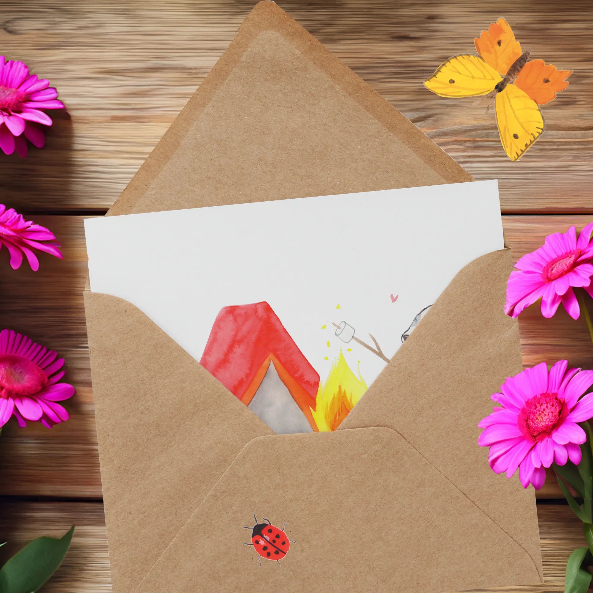 Die hübsche Geschenkverpackung rundet das gesamte Erlebnis ab, denn sie kommt mit einem passenden Umschlag. Diese Karte ist mehr als nur ein Stück Papier – sie ist eine liebevolle Geste, die von Herzen kommt und zeigt, dass Du an jemanden denkst, der das Campen liebt.