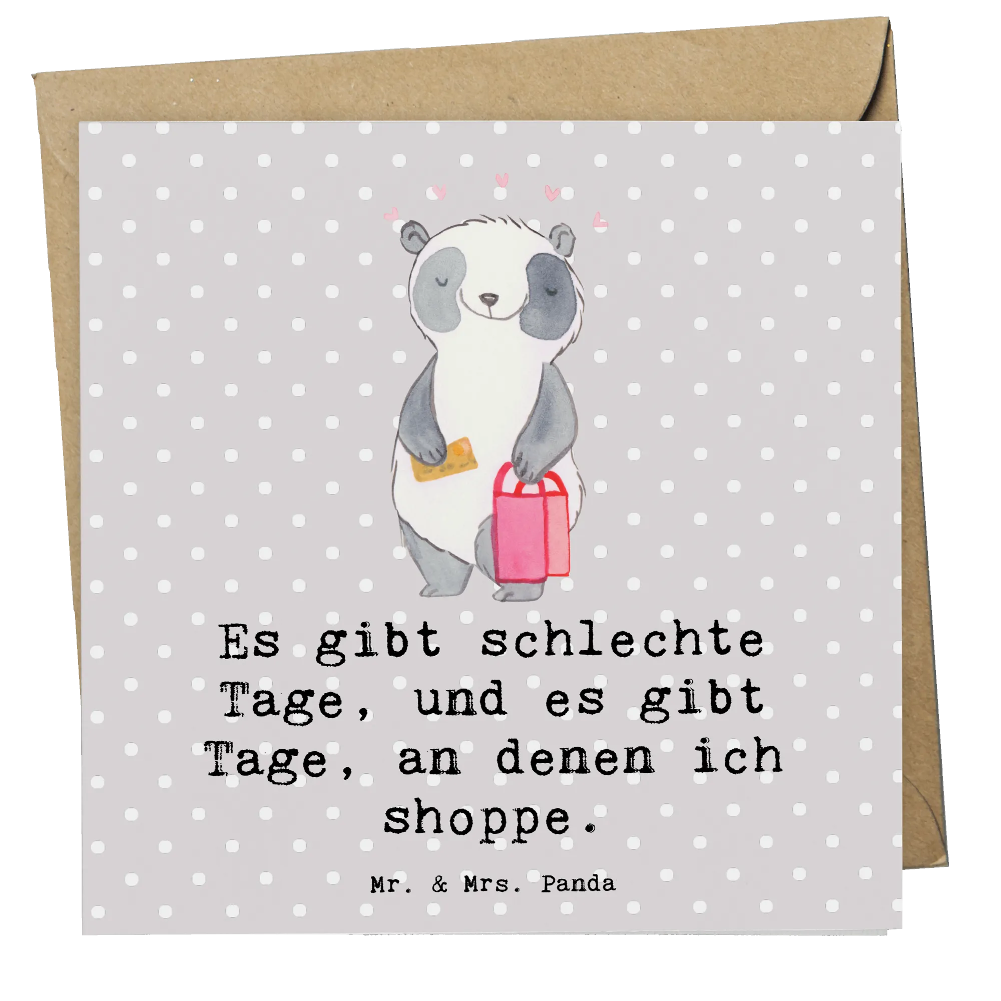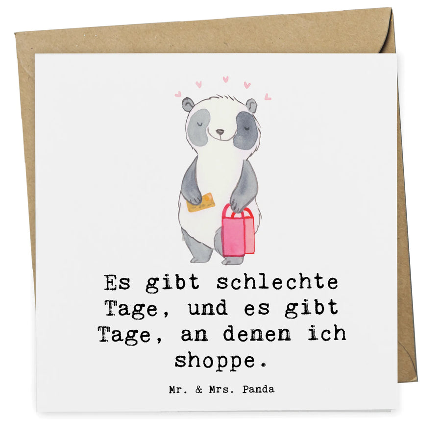 Egal ob als Geburtstagskarte, Hochzeitskarte oder einfach als kleine Überraschung zwischendurch, diese Karte zieht garantiert die Aufmerksamkeit auf sich. Mit einem niedlichen Panda, der begeistert mit Einkaufstüten voll von seinen Schätzen beim Shoppen abgebildet ist, zaubert sie jedem ein Lächeln ins Gesicht. Der dazugehörige Spruch "Es gibt schlechte Tage, und es gibt Tage, an denen ich shoppe" macht diese Karte besonders witzig und einladend.