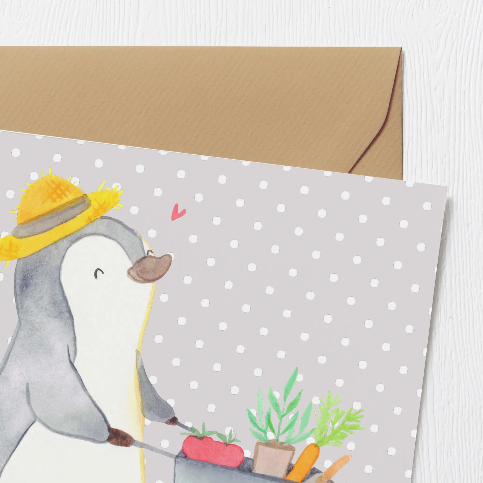Der edle Umschlag, der bereits inbegriffen ist, rundet das Geschenk perfekt ab. Schenke Freude und zeige Wertschätzung mit dieser einzigartigen Karte – sie ist das perfekte Geschenk für jeden Gartenfreund oder als kleine Aufmerksamkeit für besondere Anlässe. Der niedliche Pinguin-Charakter versprüht gute Laune und lädt zum Entspannen im Garten ein.