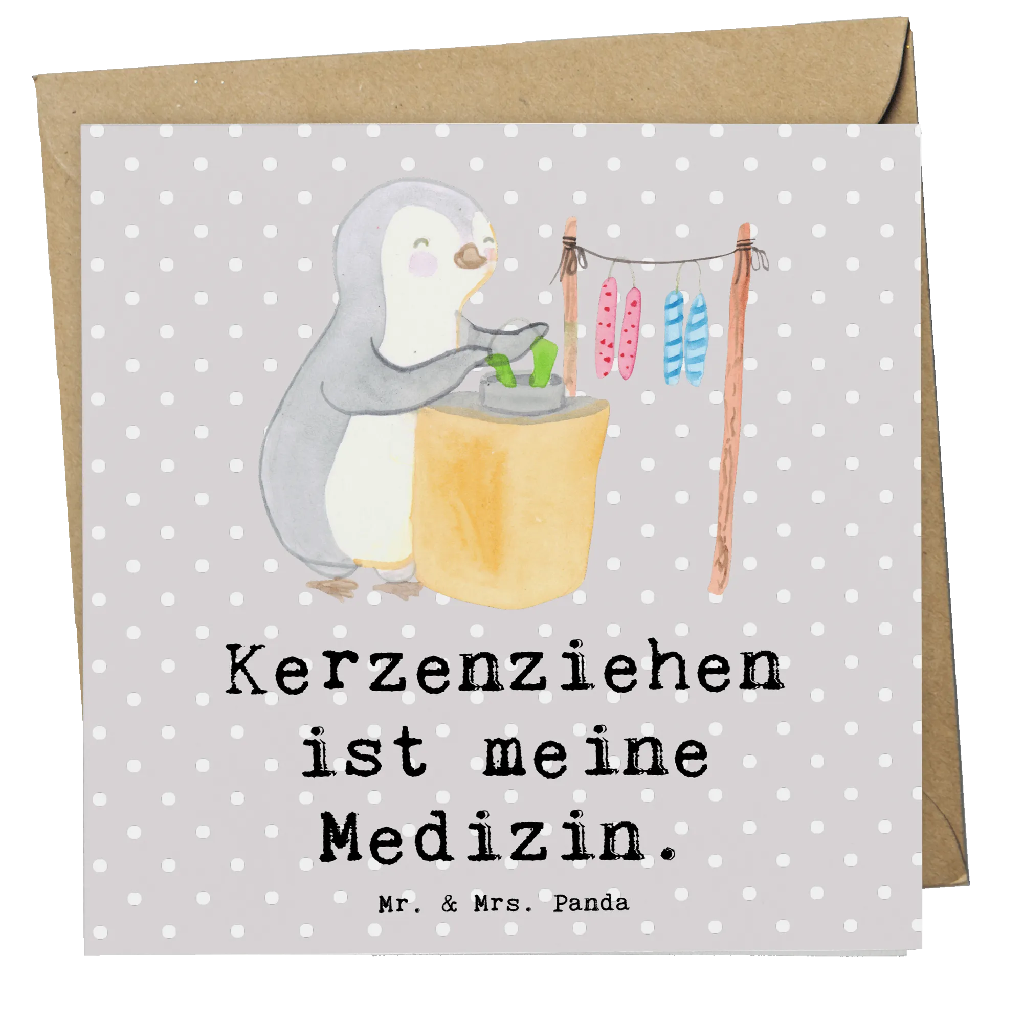 Mit ihrem süßen Pinguin-Motiv und dem Spruch "Kerzenziehen ist meine Medizin" spricht diese Karte besonders Menschen an, die ihre Freude am Basteln und DIY-Projekten ausdrücken möchten.