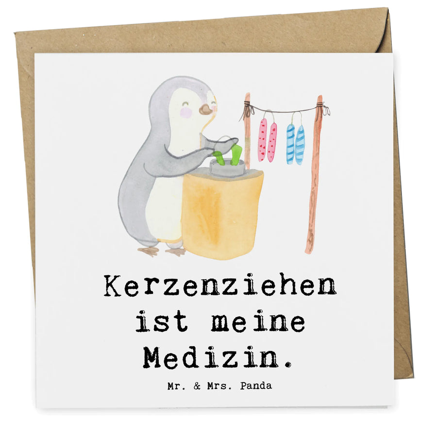 Entdecke die Deluxe Karte mit dem süßen Pinguin und dem Spruch "Kerzenziehen ist meine Medizin"! Diese hochwertige Grußkarte von Mr. & Mrs. Panda ist nicht nur ein echter Blickfang, sondern auch das perfekte Geschenk für alle, die das Kerzenziehen lieben oder gerade in ihren kreativen Hobbys aufgeblüht sind.