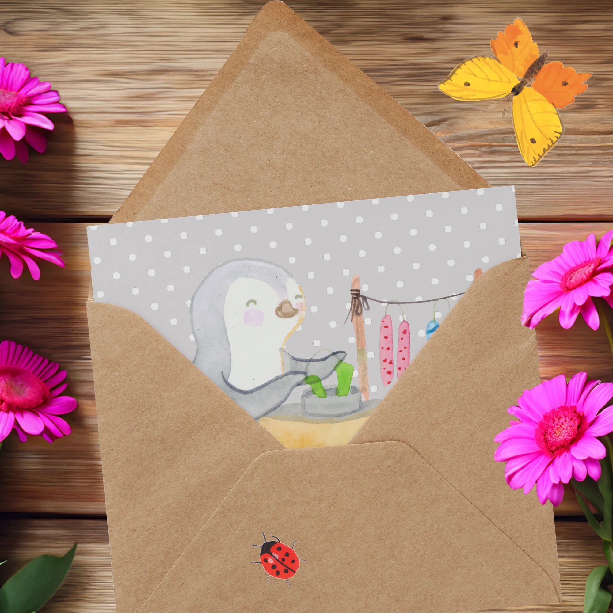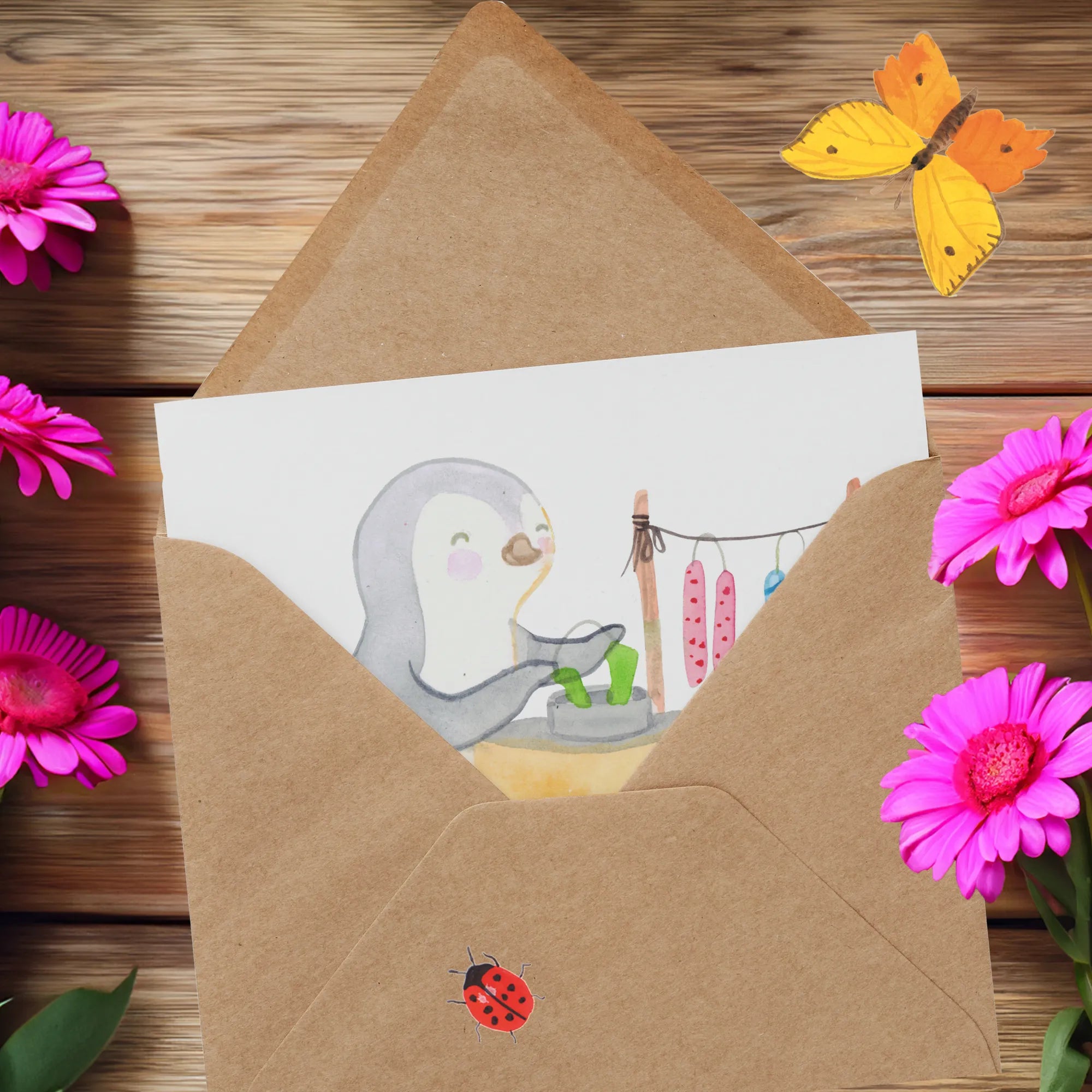Die Deluxe Karte "Pinguin Kerzenziehen Medizin" aus der Kollektion Hobby & Sport von Mr. & Mrs. Panda ist das ideale Geschenk für alle, die das kreative Hobby des Kerzenziehens lieben oder einfach einen besonderen Gruß versenden möchten.