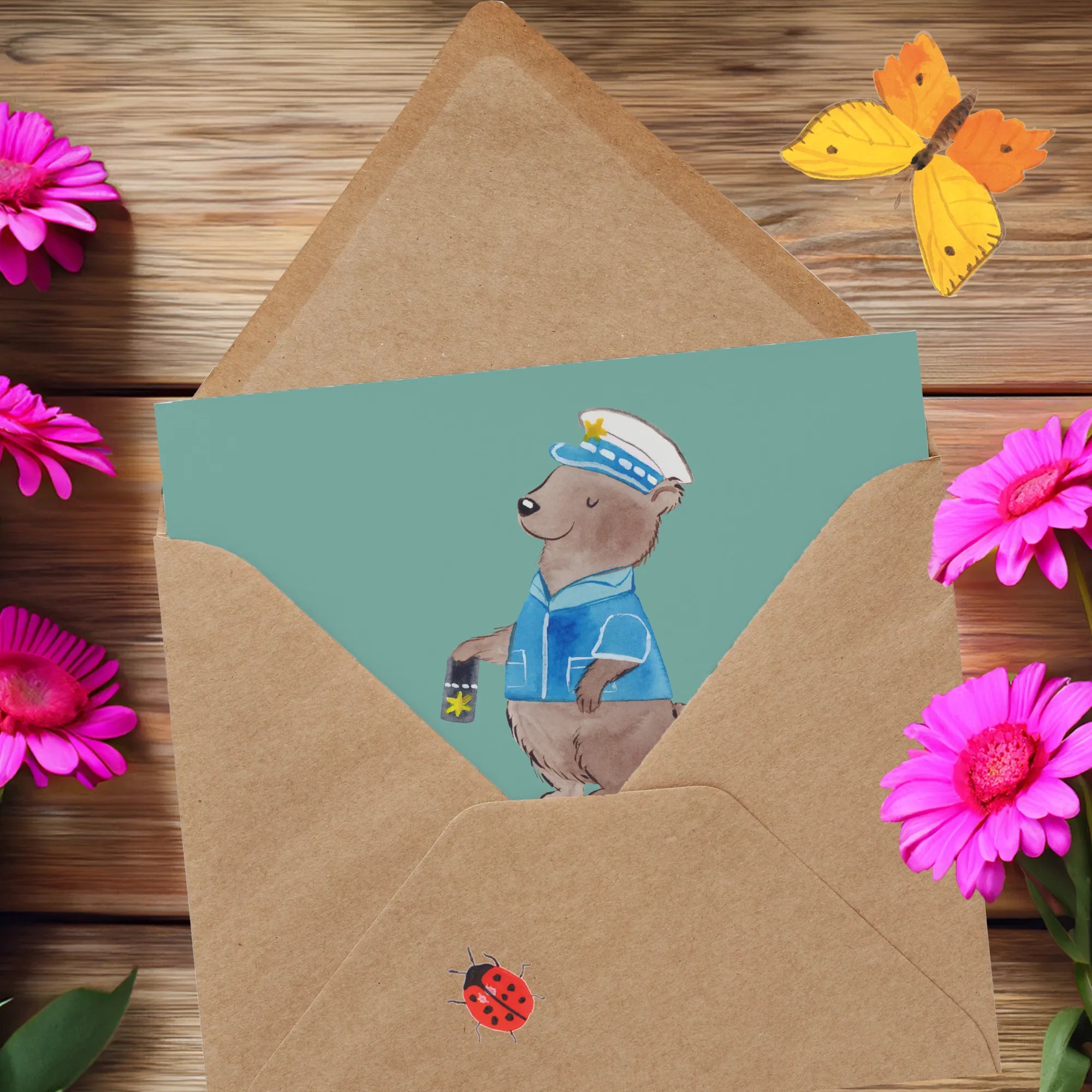 Entdecke die Deluxe Karte "Polizist" von Mr. & Mrs. Panda, die perfekte Grußkarte für alle, die den Polizeiberuf schätzen.