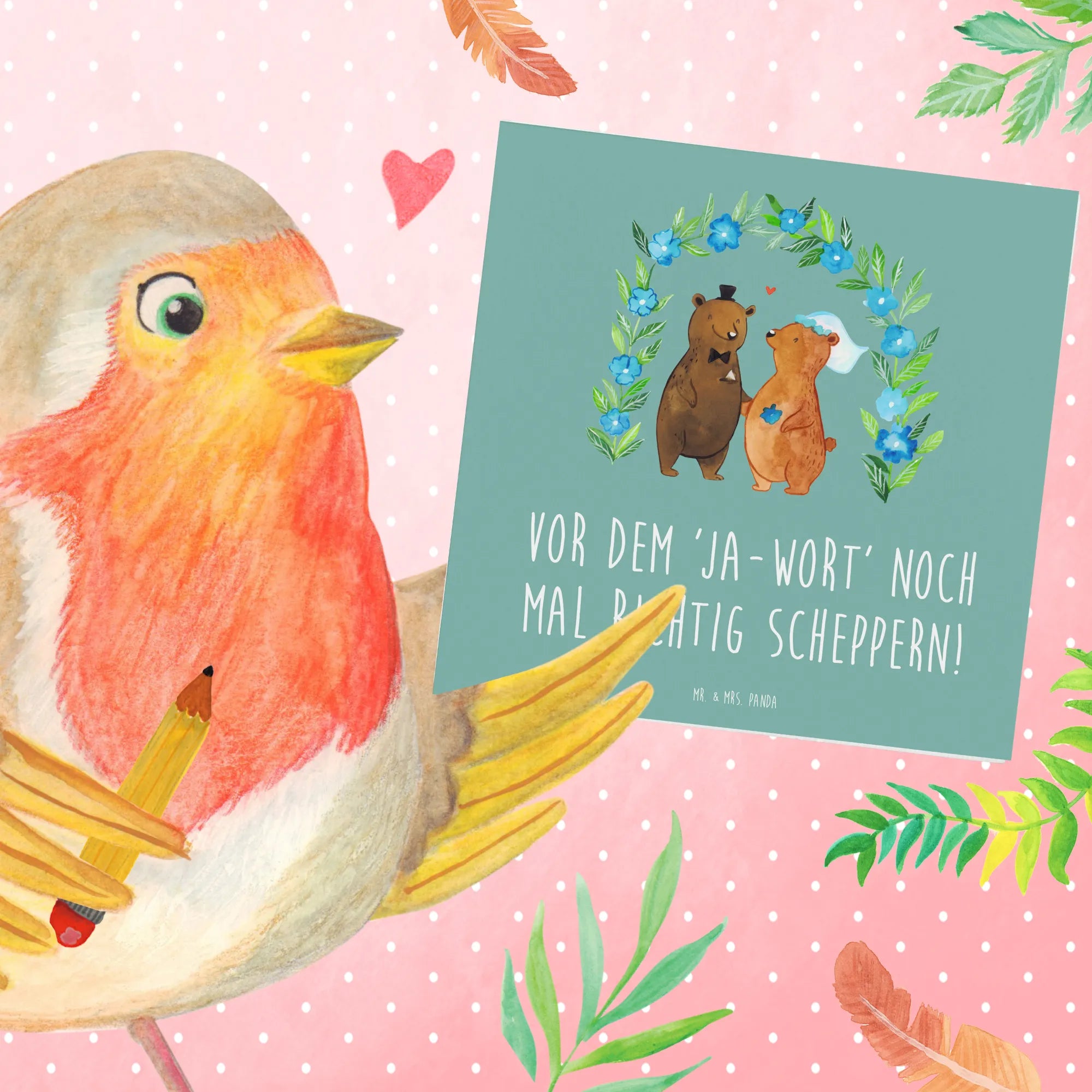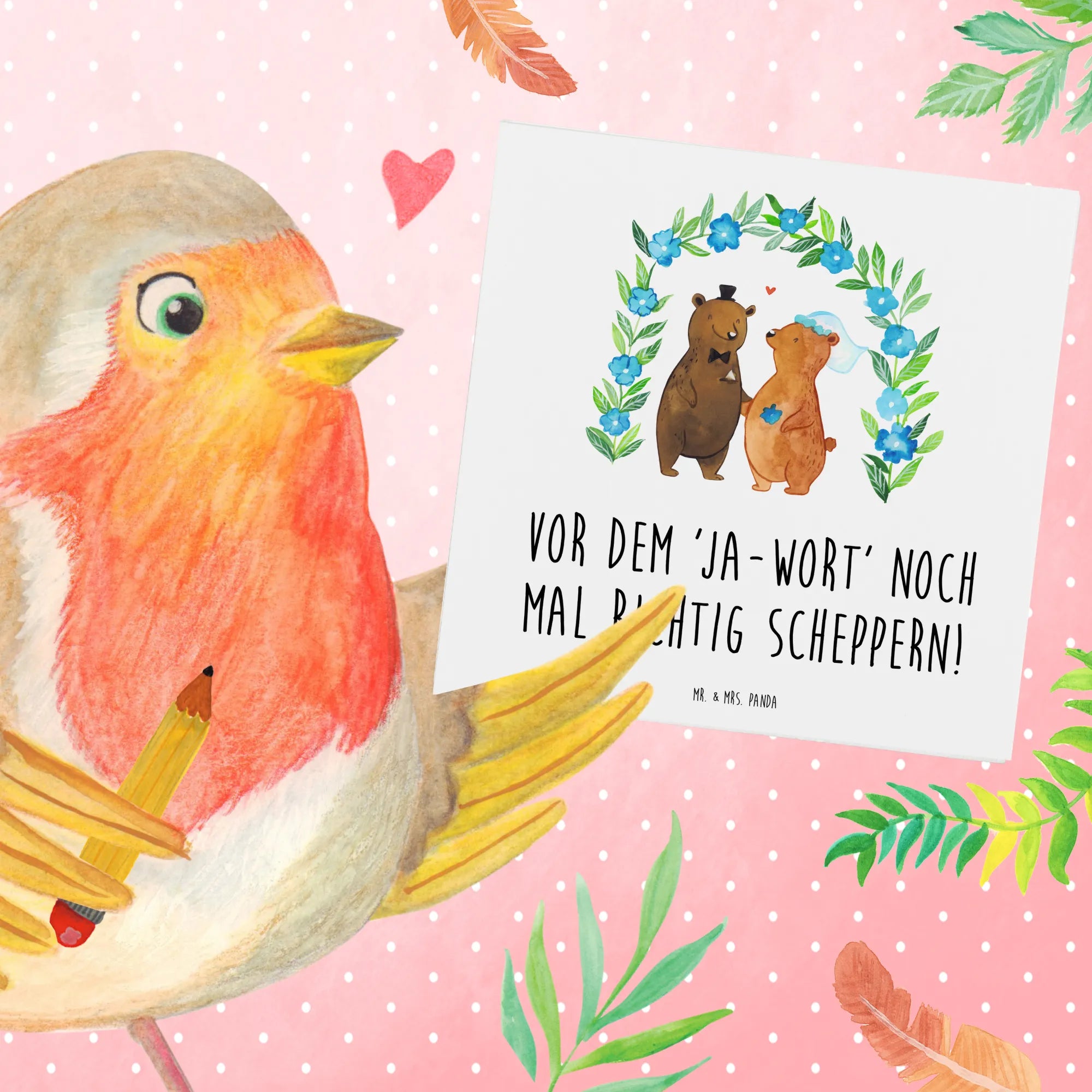 Ob als Polterabend Karte, Hochzeitskarte oder Geschenkbeilage – dieses Motiv aus der Hochzeitskollektion von Mr. & Mrs. Panda passt zu vielen Anlässen rund ums Heiraten. Finde in unserer Kollektion weitere Hochzeitsgeschenke, Verlobungsgeschenke und Jahrestag Geschenke, die deinen Tag unvergesslich machen.
