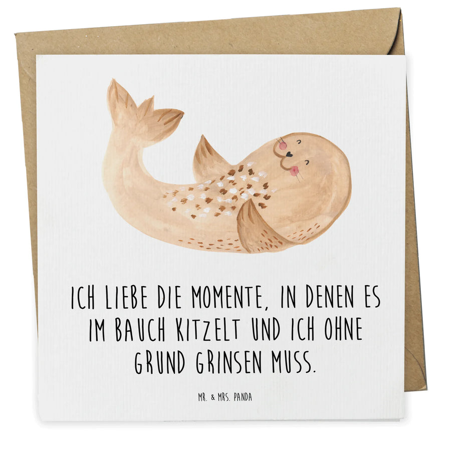 Entdecke die Deluxe Karte mit dem zauberhaften Motiv der liegenden Robbe aus der besonderen Kollektion Small World von Mr. & Mrs. Panda. Diese wunderschöne und hochwertige quadratische Karte ist mehr als nur Papier – sie ist ein kleines Stück Freude und Gemütlichkeit!