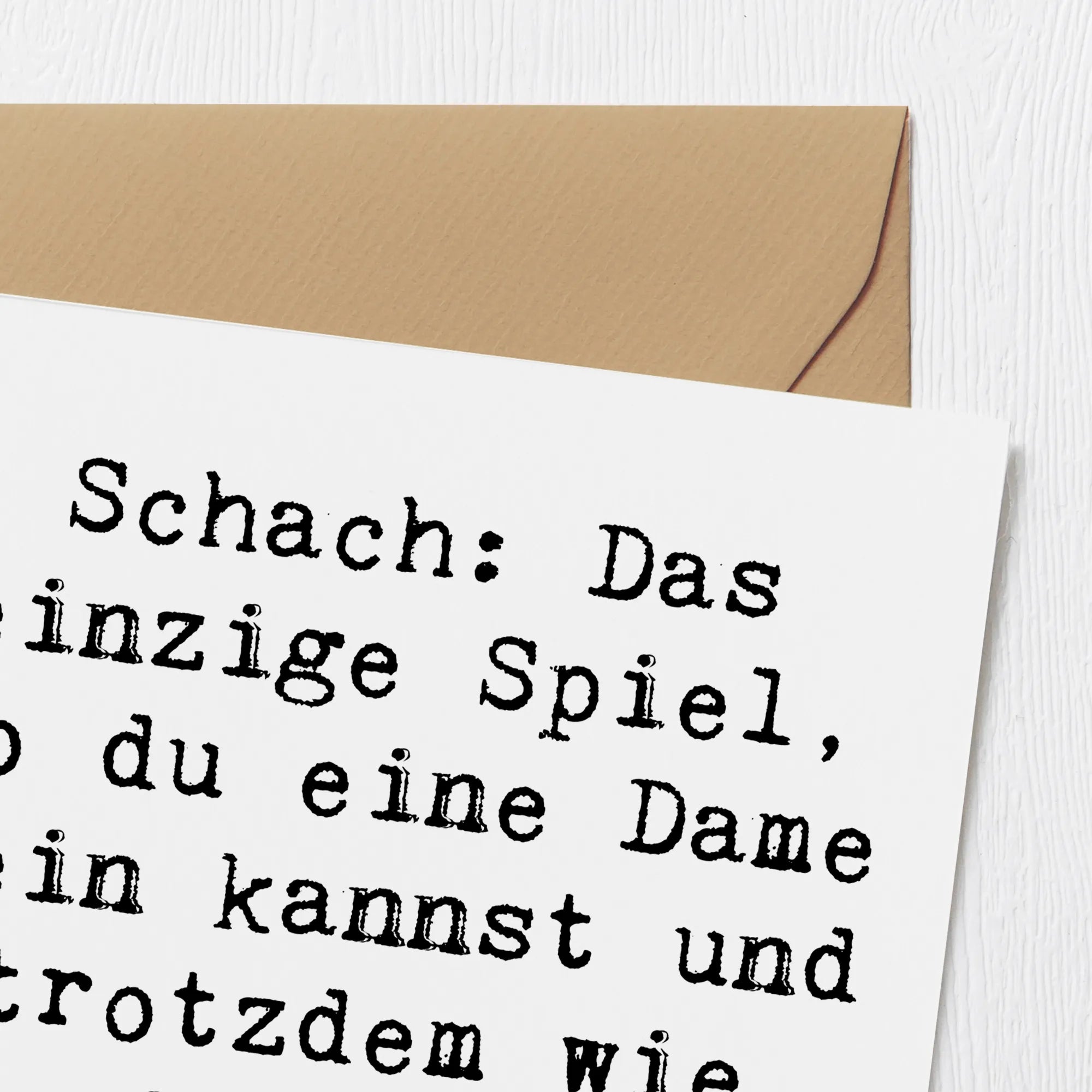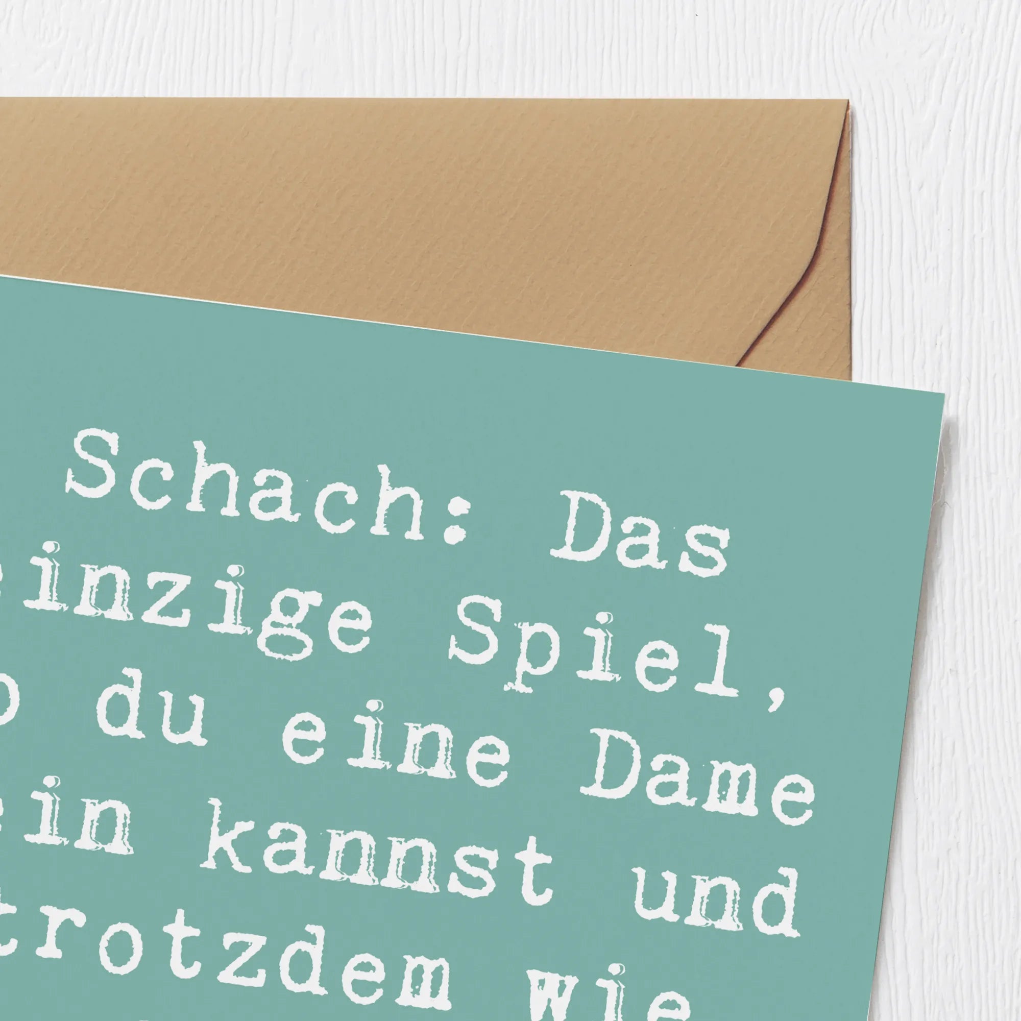 Wer kennt es nicht? Man sitzt beim Schachspiel, denkt über die nächste Züge nach und könnte dabei ein wenig Inspiration brauchen! Diese edle Karte, bedruckt mit dem süßen Spruch 'Schach: Das einzige Spiel, wo du eine Dame sein kannst und trotzdem wie ein König fühlst!', ist ideal, um einem Freund oder einer Freundin zu zeigen, wie viel Spaß das Schachspielen macht.
