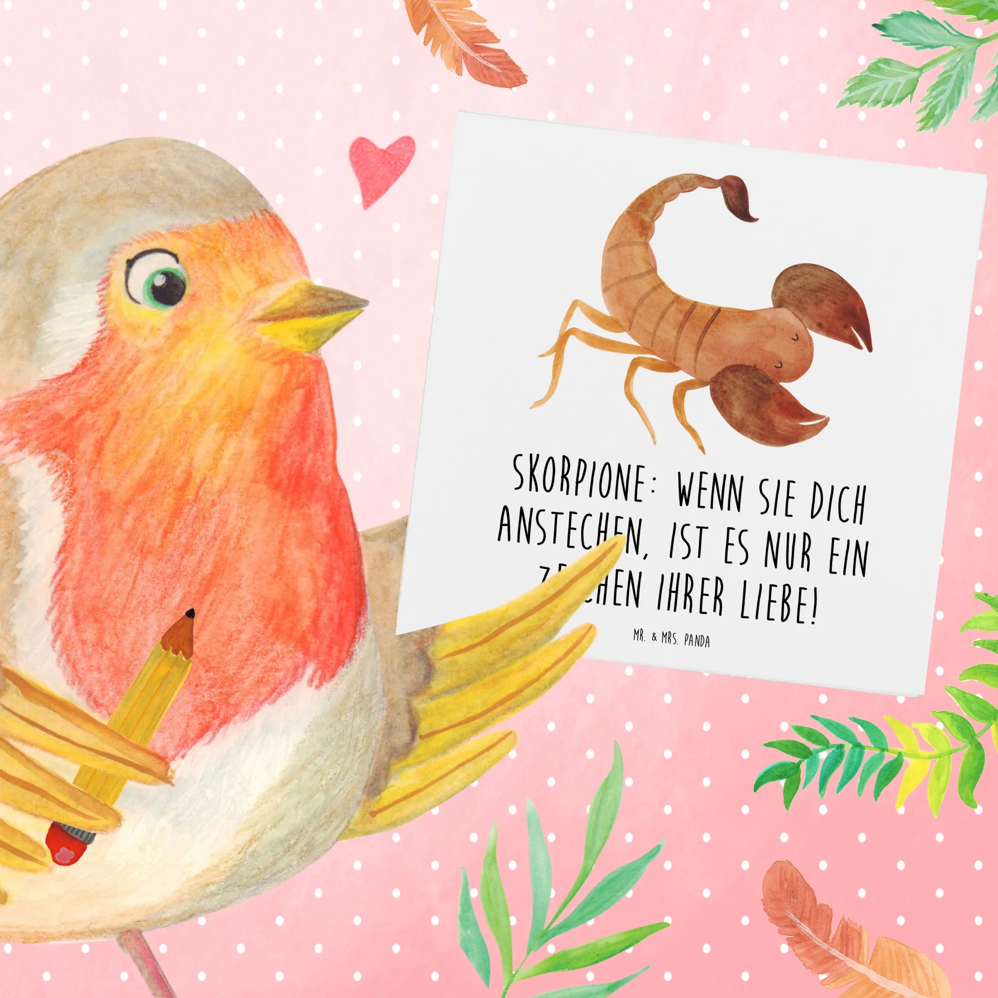 Mit der magischen Welt der Sternzeichen lässt sich der Charakter des Skorpions wunderbar in einer Grafik und einem Spruch umsetzen, die ein Lächeln auf die Lippen zaubert. Wenn Du also einem geliebten Menschen eine Freude bereiten möchtest, greif zu dieser liebevoll designte Karte!