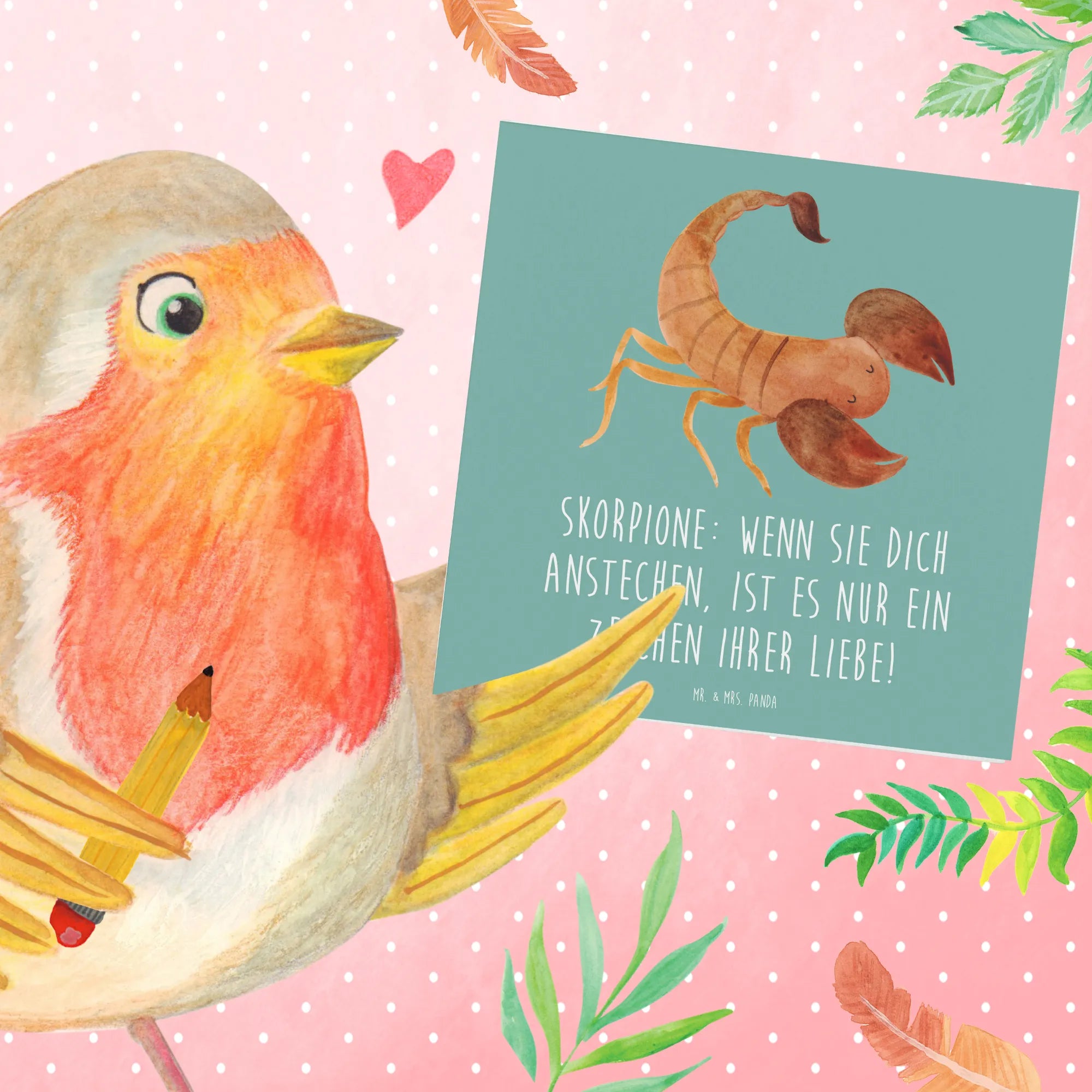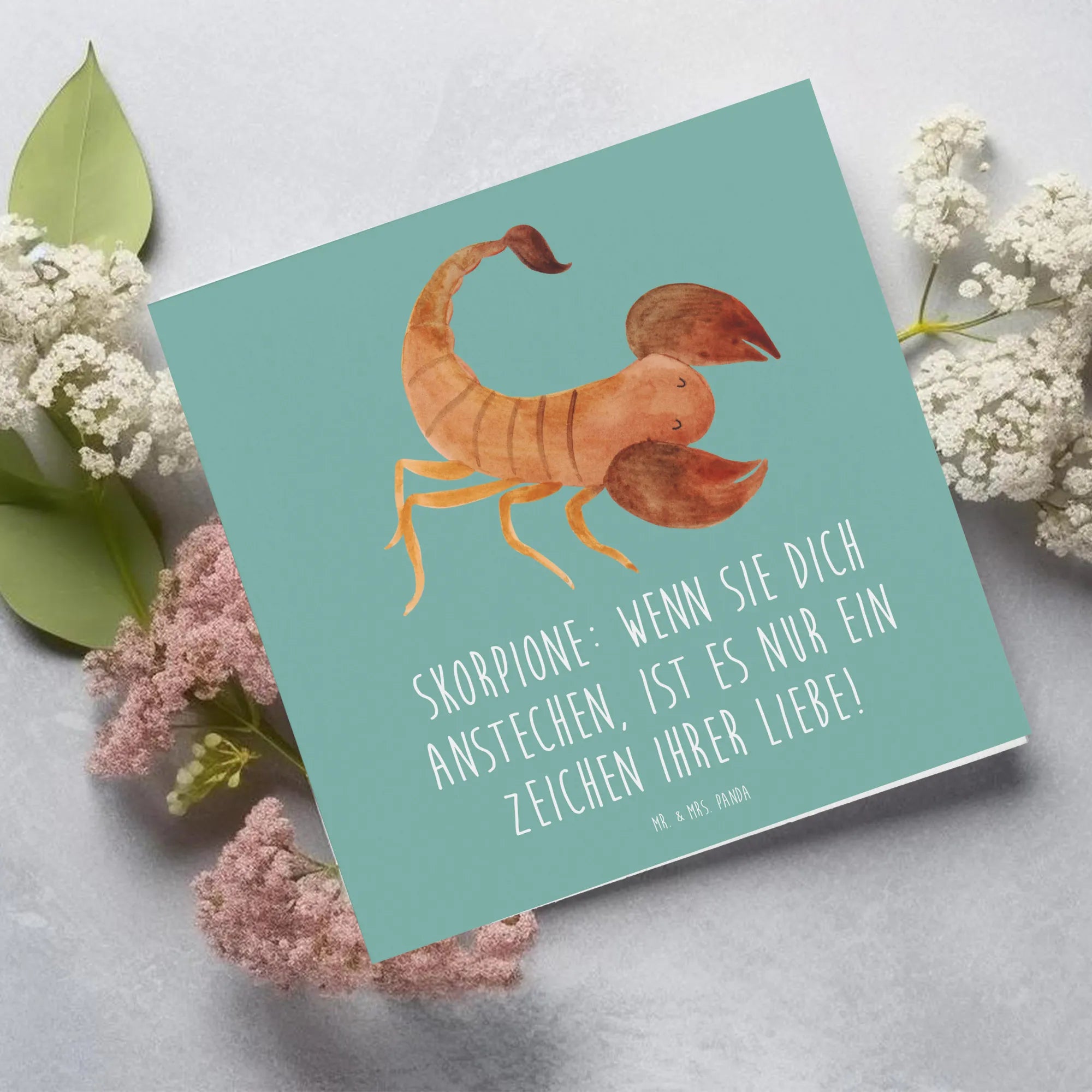 Entdecke die Deluxe Karte Skorpion von Mr. & Mrs. Panda, die perfekt für all die besonderen Anlässe im Leben ist! Diese wunderschöne, hochwertige quadratische Grußkarte ist nicht nur ein echter Hingucker, sondern enthält auch einen liebevollen Spruch: "Skorpione: Wenn sie dich anstechen, ist es nur ein Zeichen ihrer Liebe!". Die Karte hat die Maße von 140 mm x 140 mm und besteht aus hochwertigem 300 Gramm Karton, der für eine edle und einmalige Optik sorgt.
