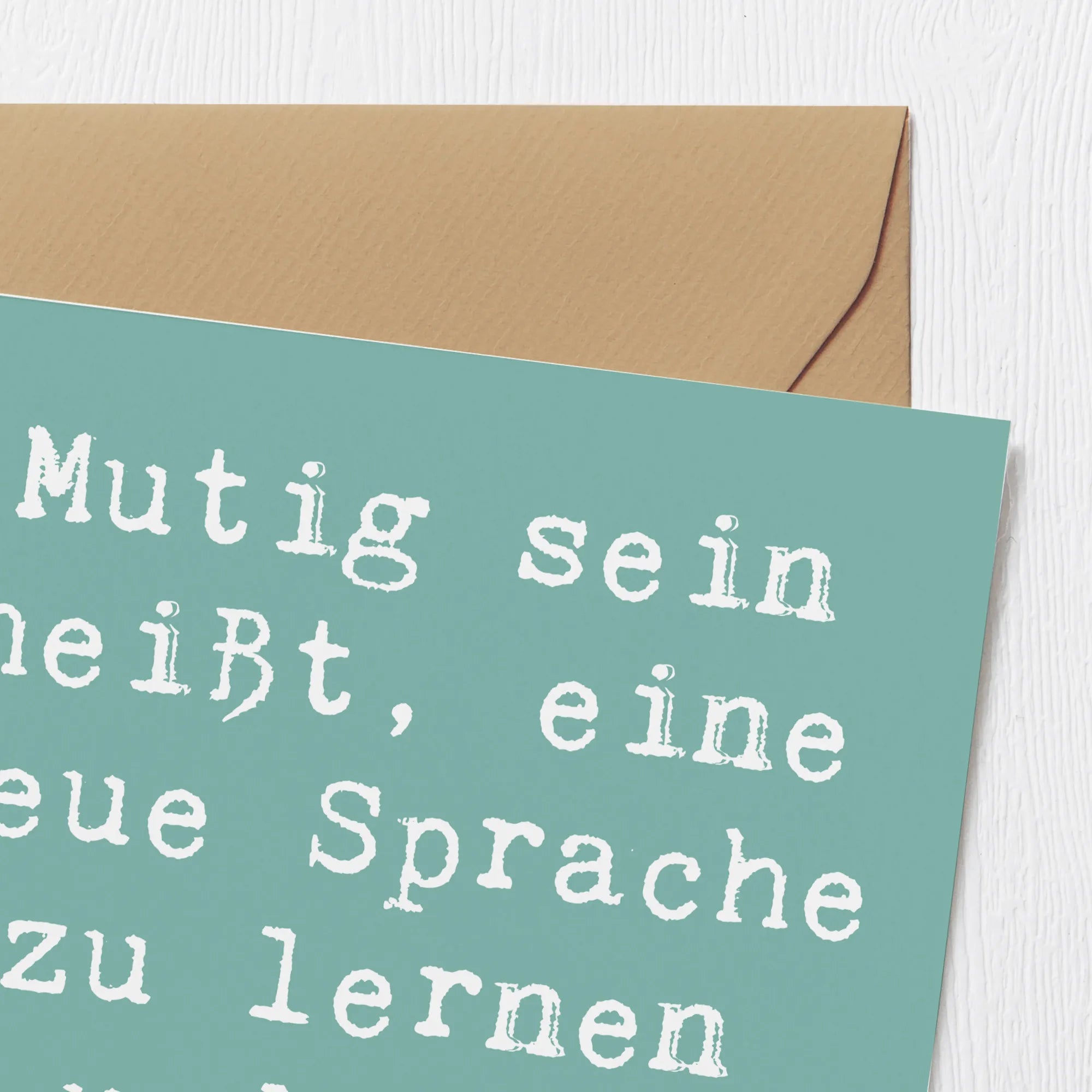 Mit dem motivierenden Spruch "Mutig sein heißt, eine neue Sprache zu lernen und sie anzuwenden!" in sanften Farben auf hochwertigem Karton verleiht diese Karte jedem Anlass eine besondere Note. Ob als Glückwunschkarte für einen Geburtstag, zur Ermutigung bei einer neuen Aufgabe, oder als liebevolle Einladung zu einem Fest – diese Karte strahlt Wärme und Herzlichkeit aus.