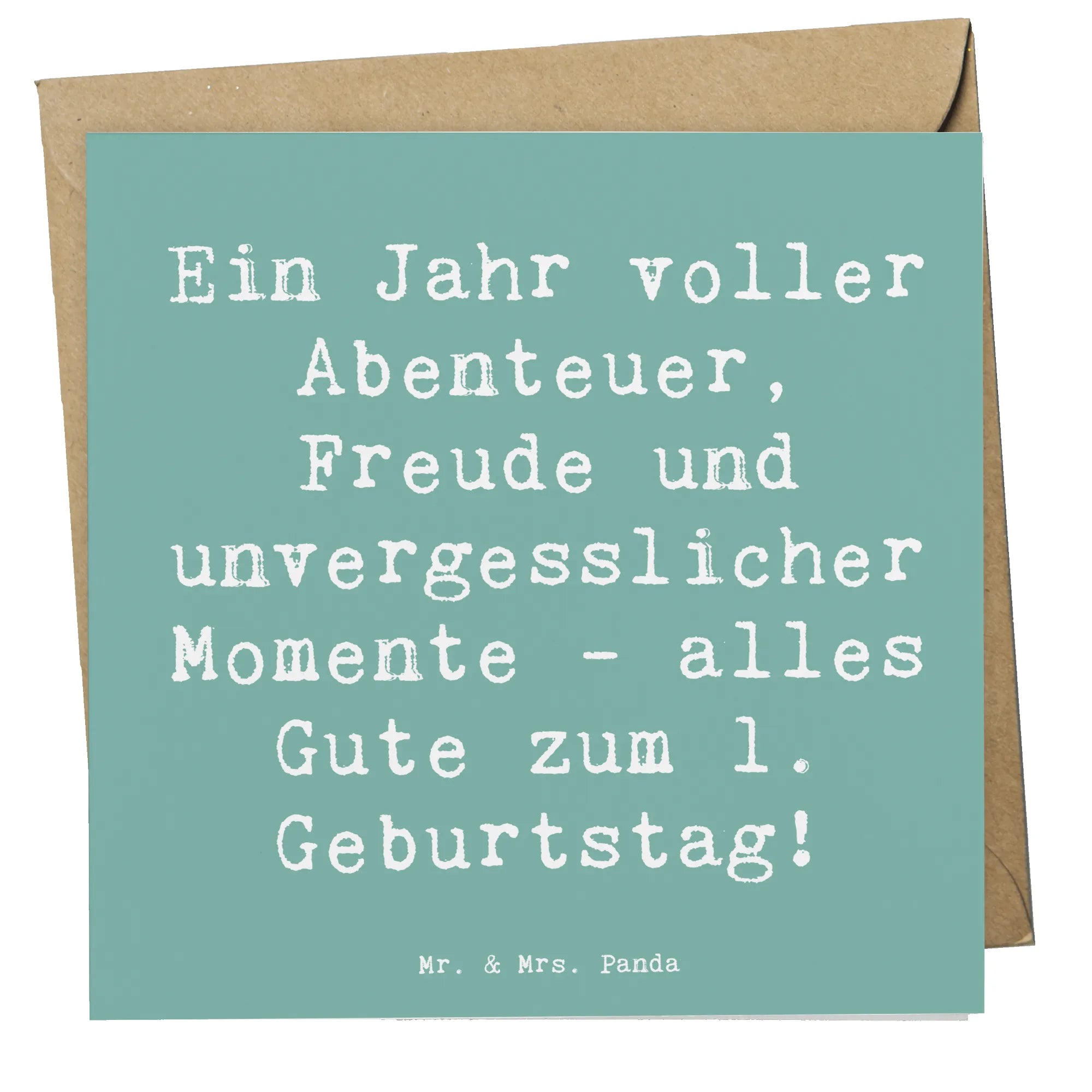 Du suchst nach dem perfekten Geschenk zum ersten Geburtstag? Dann ist unsere Deluxe Karte "Ein Jahr voller Abenteuer, Freude und unvergesslicher Momente - alles Gute zum 1. Geburtstag!" von Mr. & Mrs. Panda genau das Richtige für Dich! Diese wunderschöne, hochwertige quadratische Karte in der Größe von 140 mm x 140 mm ist nicht nur ein schöner Blickfang, sondern auch ideal, um herzliche Glückwünsche auszusprechen. Ob von den Großeltern, den Eltern oder Freunden, diese Karte wird jedem kleinen Geburtstagskind ein Lächeln ins Gesicht zaubern.